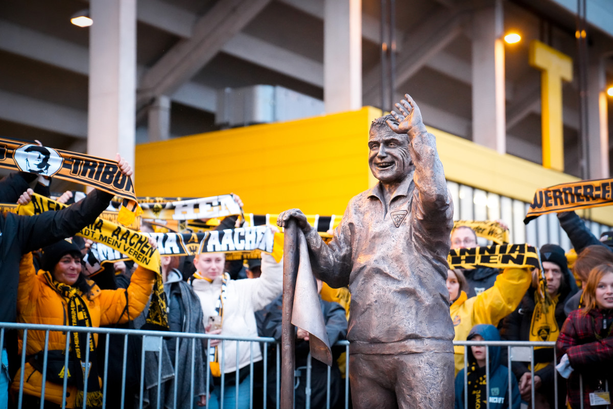 Alemannia Aachen setzt dem größten Trainer seiner Vereinsgeschichte ein Denkmal direkt vor dem Tivoli. Acht Tage nach dem Geburtstag von Trainerlegende Werner Fuchs wurde vor dem Spiel seiner Alemannia gegen den 1. FC Saarbrücken feierlich eine Statue zu seinem Andenken enthüllt. Aufgestellt wurde sie auf dem Vorplatz des Stadions in unmittelbarer Nähe zur Werner Fuchs Tribüne. Zahlreiche Fans, das Präsidium des Aachener Turn- und Sportvereins Alemannia 1900 e.V., Rachid Azzouzi in seiner Funktion als Geschäftsführer Sport und auch die Familie Fuchs begleiteten die Zeremonie.
