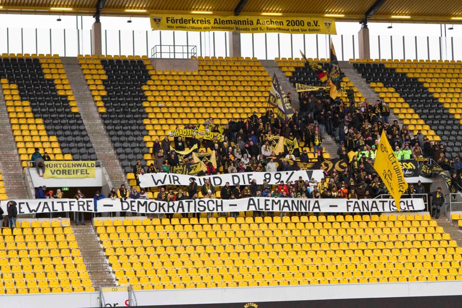 In den letzten Wochen und Monaten ist ein Bild der Alemannia und ihrer Fans entstanden, das uns allen und dem Verein schadet. Dieses Bild - die Aachener Fanszene sei ein Sammelbecken für gewaltbereite Rechtsradikale - ist falsch, und es belastet die weit überwiegende Mehrheit der Alemannen völlig zu Unrecht. Es ist schade, dass in der Berichterstattung der letzten Zeit die 99 %, die die breite Mehrheit der Alemannenfamilie bilden, so wenig zur Kenntnis genommen wurden.