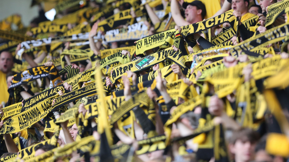 Kartenverkauf am Spieltag: Am Spieltag sind Tickets für Alemannia-Fans von 10 bis ca. 12:15 Uhr zum Vorverkaufspreis im Fanshop und danach an den Kassen im Nordosten, Südosten und Südwesten des Stadions erhältlich. Dauerkarten können nur bis ca. 12:15 im Fanshop erworben werden. Karten für Rollstuhlfahrer und für den Ehrenamtspass können an den Clearing-Stellen im Südosten und Südwesten gekauft werden. Im Südosten ist noch bis zur Halbzeitpause eine Spätkasse geöffnet. Die Schiedsrichterkasse befindet sich im Nordwesten und ist von ca. 13 Uhr bis 13:45 Uhr geöffnet, es werden dort Karten für den Block S6 ausgegeben. Business-Karten sind am Business-Eingang an der Sparkassen-Tribüne erhältlich.