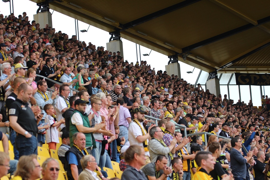 Verfügbare Blöcke: Geöffnet sind die Blöcke O4 bis O6 auf der Osttribüne, der gesamte Kaiserstädter Wall (S1 bis S6) sowie die Blöcke W1 und W2 auf der Sparkassen Tribüne. Für Gästefans ist der Block W4 geöffnet.