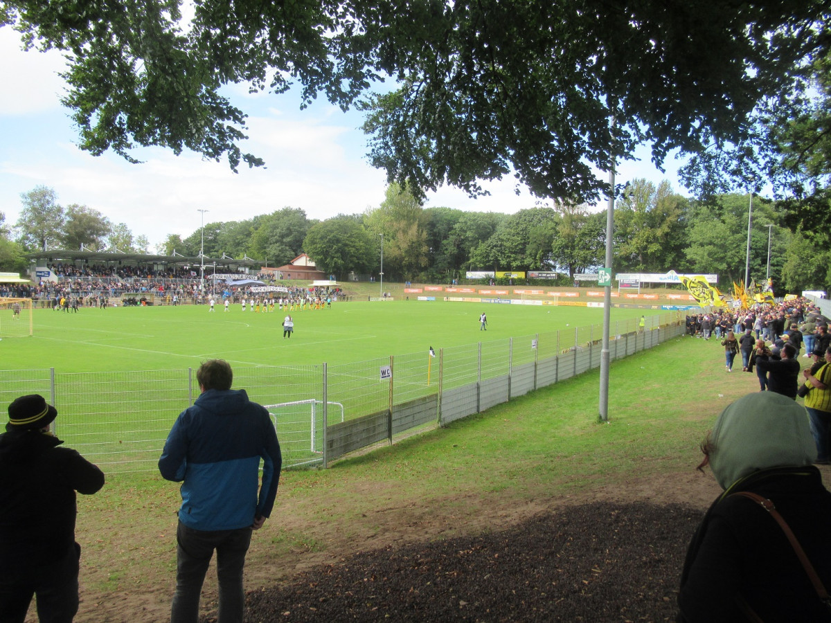 Die 1980 anlässlich des Aufstiegs in die 2. Fußball-Bundesliga errichtete Haupttribüne stellte 2.230 überdachte Sitz- und 3.120 überdachte Stehplätze zur Verfügung. Im Juli 2012 wurde aufgrund statischer Mängel mit dem Abriss der Tribüne begonnen und im Jahr darauf durch einen Neubau ersetzt. Das Besondere an dem Stadion sind die drei anderen Tribünen. Diese sind nicht befestigt und als Rasenwälle ausgelegt. Nur vereinzelt befinden sich hier Wellenbrecher. Auf diesen grünen Tribünen können gut 12.000 Zuschauer Platz finden.