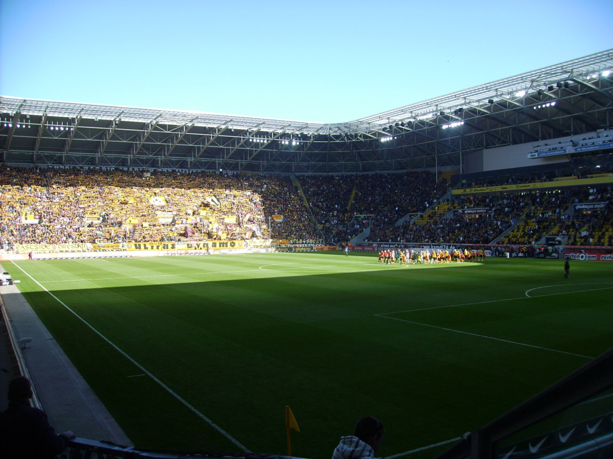 Das Rudolf-Harbig-Stadion ist mit einer Gesamtkapazität von 32.249 Plätzen neben dem Aachener Tivoli das größte Einrang-Stadion Deutschlands. Mit seinen komplett überdachten, steilen Tribünen ist das 2009 neu eröffnete reine Fußball-Stadion eines der lautesten im deutschen Profi-Fußball.