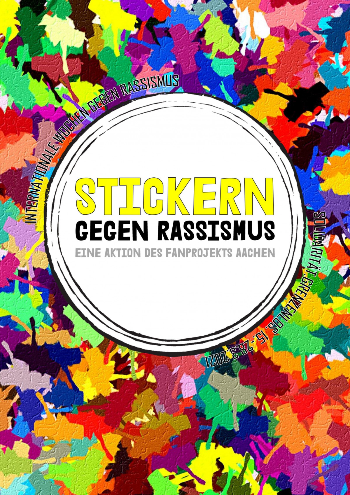 Anlässlich der Internationalen Wochen gegen Rassismus, die vom 15. bis zum 28.3.2021 stattfinden, veranstaltet das Fanprojekt Aachen einen Stickerwettbewerb mit dem Motto „Stickern gegen Rassismus“. Der Wettbewerb richtet sich vorranging an Jugendliche, doch mitmachen kann jede*r unabhängig des Alters. Die Teilnahmebedingungen sind denkbar einfach: