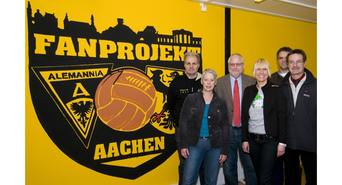 Im August 2009 hatte er seinen Dienst eigentlich getan, das Inventar war herausgeräumt und das Schloss verriegelt, wenige Monate später wird er nun wieder mit Leben gefüllt. Die Rede ist vom Alemannia-Shop am alten Tivoli. Der schwarz-gelbe Container, einige Jahre als Verkaufsstelle für Fanartikel und Tickets genutzt, hat nun eine neue Funktion. Er ist das Zuhause des Fanprojektes Aachen.