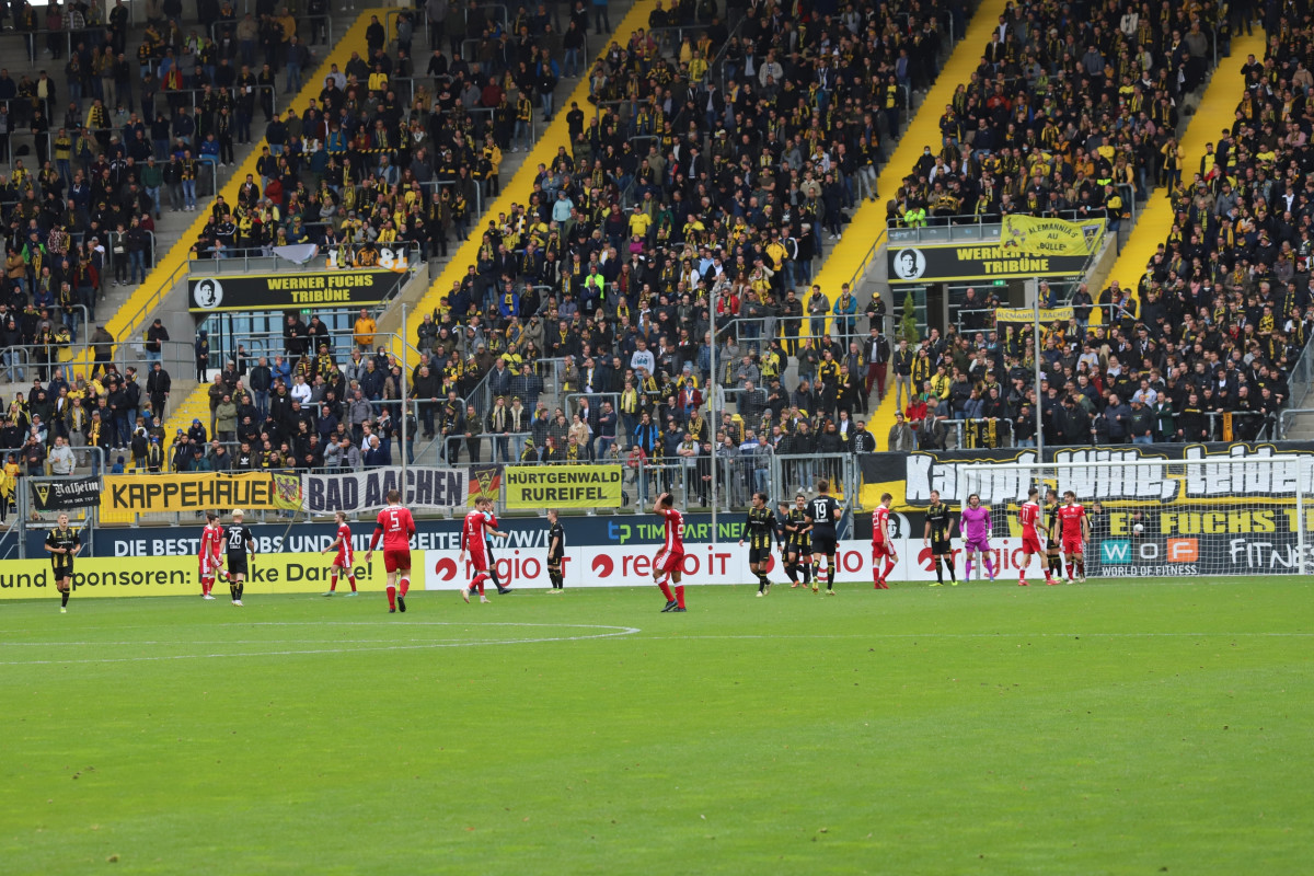 Geöffnet sind weiterhin die Sitzplatzblöcke O4 bis O6 auf der Osttribüne, die Eckblöcke S1 und S6 sowie die Blöcke W1 und W2 auf der NetAachen-Tribüne. Für Gästefans sind die Blöcke N1 (Stehplatz) und W4 (Sitzplatz) geöffnet.
