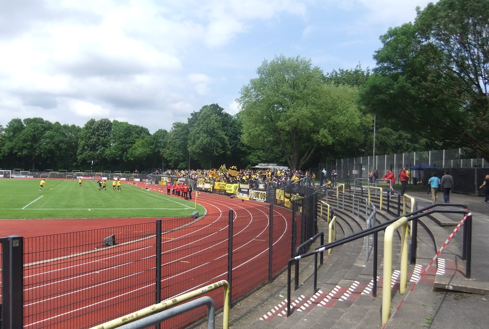 Infos zur Mondpalast-Arena: Das städtische "Stadion im Sportpark Wanne-Süd" wurde 1955 erbaut und anlässlich des Zweitligaaufstiegs des DSC Wanne-Eickel im Jahr 1978 ausgebaut. 1992 wurden Teile der Sitztribüne überdacht, 2009 erfolgte die Umbenennung in "Mondpalast-Arena". Wanne-Eickel wurde 1975 in die Stadt Herne eingemeindet.