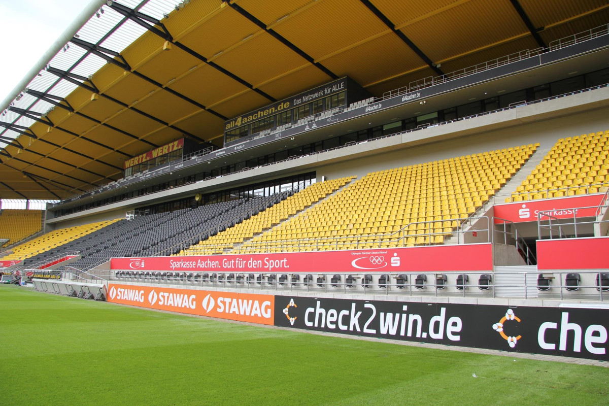 Kartenverkauf am Spieltag: Am Spieltag sind Tickets für Alemannia-Fans von 10 bis ca. 17:45 Uhr zum Vorverkaufspreis im Fanshop und danach an den Kassen im Nordosten, Südosten und Südwesten des Stadions erhältlich. Karten für Rollstuhlfahrer und für den Ehrenamtspass können an den Clearing-Stellen im Südosten gekauft werden. Im Südosten ist noch bis zur Halbzeitpause eine Spätkasse geöffnet. Die Schiedsrichterkasse befindet sich im Nordwesten und ist von ca. 18:30 Uhr bis 19:15 Uhr geöffnet, es werden dort Karten für den Block S6 ausgegeben. Business-Karten sind am Business-Eingang an der Sparkassen-Tribüne erhältlich. Dauerkarten können ausschließlich bis 17:45 Uhr im Fanshop erworben werden.