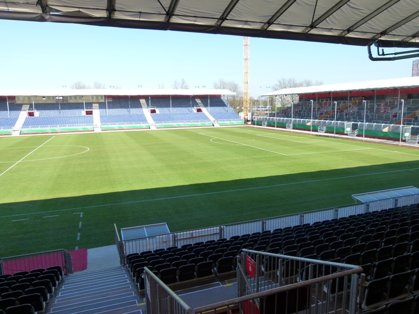 - eine (aufgrund des kleinen Gästeblocks) begrenzte Zahl von Zaunfahnen