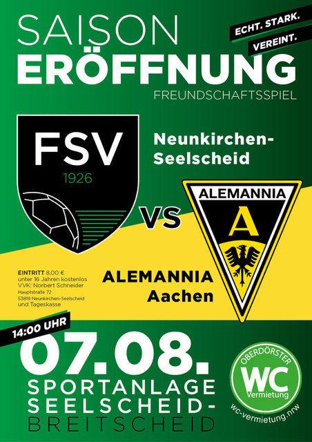 Am Sonntag, 7.8., bestreitet die Alemannia ein Testspiel beim FSV Neunkirchen-Seelscheid.