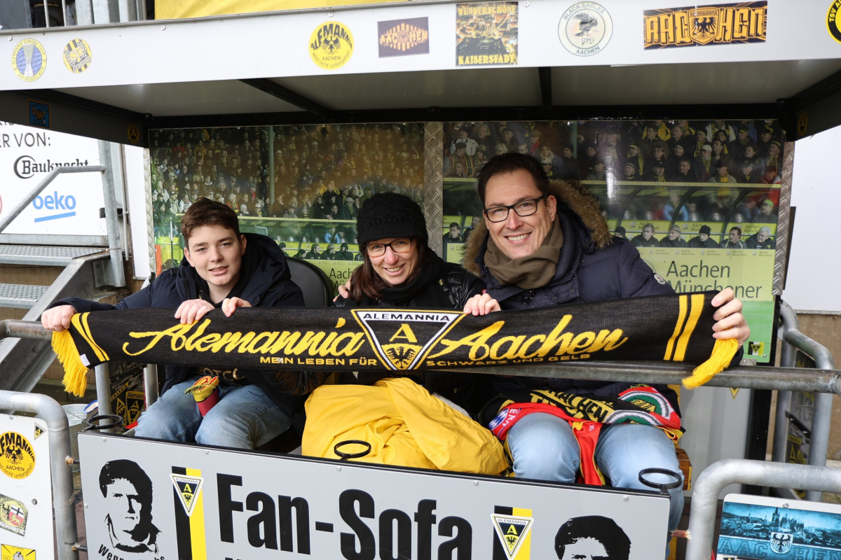 Und so feuerten Christine, Ralph und ihr Sohn Till auf dem Fansofa die Alemannia im Namen von Wolfgang an. Momente, die zeigen, wofür Alemannia Aachen steht: nicht nur für Fußball, sondern für Zusammenhalt, Treue und Herzblut über Generationen hinweg.