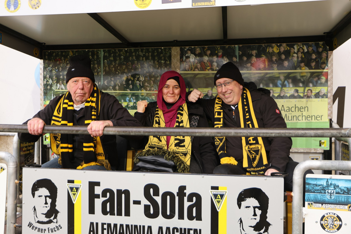 Beim Heimspiel gegen Viktoria Köln saß Alemannia-Fan Christian auf dem Fansofa und verfolgte das Spielgeschehen aus nächster Nähe. Christian ist langjähriges Mitglied der Schwarz-Gelben und engagiert sich in seinem Heimatort Setterich für hilfsbedürftige Menschen. Zuvor war er bereits 20 Jahre lang für die Lebenshilfe tätig.