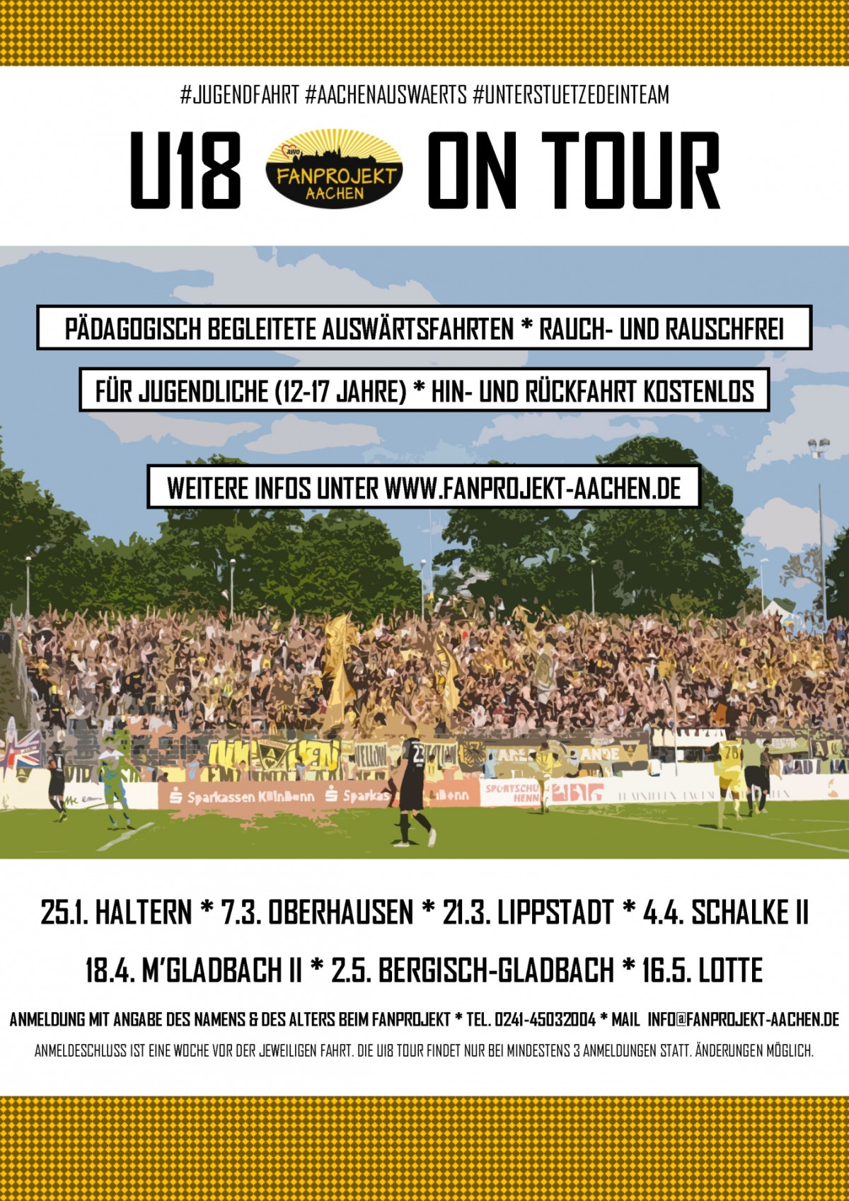 Unsere U18-Fahrten richten sich an Jugendliche von 12 bis 17 Jahren. Die Hin- und Rückfahrt ist kostenlos. Infos zur Abfahrtszeit, zum Eintrittspreis und weitere Details gibt es direkt beim Fanprojekt. Die Teilnahme findet nur statt, wenn die Einverständniserklärung (bitte auch die Datenschutzerklärung lesen!) vollständig ausgefüllt und vor Fahrtantritt bei uns abgeben wurde. Die verbindliche Anmeldung erfolgt mit Angabe des Namens und Alters des Jugendlichen telefonisch oder per Mail. Anmeldeschluss ist eine Woche vor der Fahrt! Die U18 Auswärtsfahrt findet nur bei mindestens 3 Anmeldungen statt!