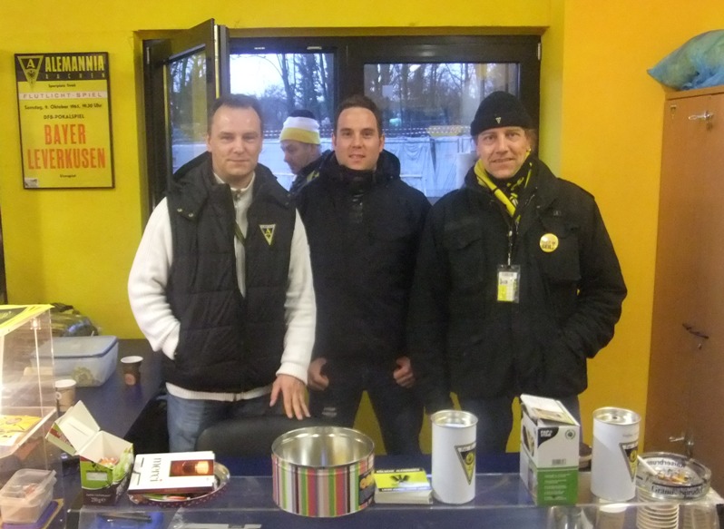 Ab sofort werden die Fanbeauftragten der Alemannia durch drei ehrenamtliche Fanbetreuer in ihrer täglichen Arbeit unterstützt. Frank Beißel, Stephan Braun und Lou Suiker werden für den neu zu wählenden Vorstand der Fan-IG nicht mehr zur Verfügung stehen, werden aber ihr Engagement in gewohnter Weise fortsetzen. Die drei Ehrenamtler ergänzen das Team um Lutz van Hasselt, Robert Jacobs und Petra Aretz und stehen nicht nur an Spieltagen als zusätzliche Ansprechpartner zur Verfügung. Alle E-Mail-Adressen und Telefonnummern sind hier zu finden.