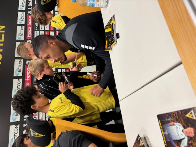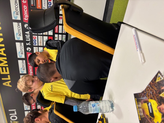 Ein Highlight am zweiten Tag des Camps war die Pressekonferenz mit drei Spielern der 1. Mannschaft. So beantworteten Jan Olschowsky, Florian Heister und Pierre Nadjombe geduldig die zahlreichen Fragen der Kinder und gaben anschließend die heiß begehrten Autogramme.