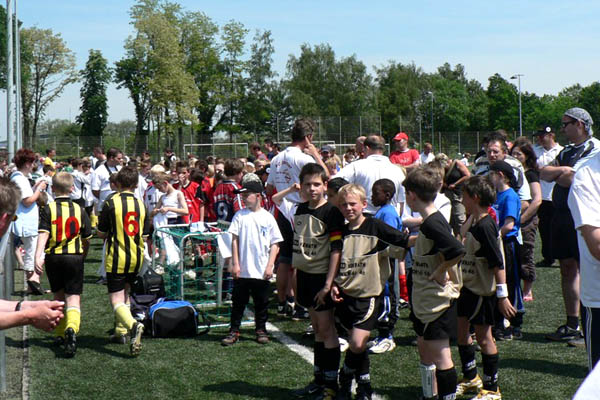 Am Samstag um 9.45 Uhr fiel der Startschuss, bis 18.30 Uhr trafen die Spieler der E- und G- Juniorenmannschaften aufeinander. Am Sonntag trugen die F- und G-Junioren ihre Spiele auf dem Kunstrasen aus. Und alle Mannschaften durften sich auf die volle Unterstützung der Fans verlassen. Zahlreiche Eltern und Freunde der Akteure waren gekommen, um ihr Team anzufeuern und das leckere Angebot der Cafeteria oder des Grillstandes zu genießen. Und auch die hart gesottenen WM-Anhänger kamen auf ihre Kosten. Am Ende zählte natürlich die faire Teilnahme aller. Daher bekamen auch alle Spieler ein T-Shirt zur Erinnerung. Die Siegermannschaften der Turniere erhielten ein unterschriebenes Trikot der Profis. Und für die vielen Jugendteams endete das Turnierwochenende mit einem zufriedenen Lächeln.