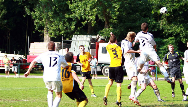 Manuel Junglas und Abdul Özgen taten sich hier als Doppeltorschützen hervor. Marco Quotschalla, Nico Schmied und ein Eigentor des Gegners schraubten das Ergebnis in die Höhe. Im zweiten Spiel traf Alemannias Reserve am Donnerstag auf den Mittelrhein-Ligisten und Gegner der Profis im Pokal, den FC Wegberg-Beek. Die junge Mannschaft besiegte die Wegberger hochverdient mit 3:0 durch Tore von Abdul Özgen (2) und Dominik Lenzen.