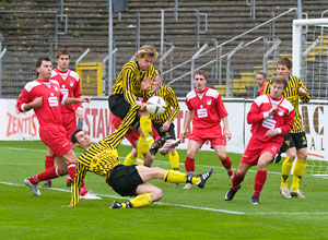 Drei Siege in Folge stehen für die A-Junioren zu Buche, und in der spielfreien Zeit konnten die Schwarz-Gelben im Testspiel beim Verbandsligisten FC Germania Dürwiß einen weiteren Erfolg verbuchen (7:2). Im Freundschaftsspiel hatte Heitmann insbesondere die Spieler eingesetzt, die in der Meisterschaft seltener zum Zug kommen.  „Ich habe einen guten Eindruck von meiner Mannschaft. Alle erledigen ihre Aufgaben sehr zufrieden stellend. Wir sind im Rhythmus“, beschreibt der Coach den Zustand seiner Mannschaft. Mit drei Siegen im Rücken werden die Tivoli-Kicker selbstbewusst zum Spiel nach Köln fahren. Der Coach warnt jedoch vor Überheblichkeit, die aus der Siegesserie resultieren kann: „Es läuft nichts von alleine. Wir müssen die Konzentration hoch halten.“ Auch wenn der Gegner aus der Domstadt bislang nur einen Sieg einfahren konnte, weiß Heitmann um die individuelle Klasse der Kölner, sodass „wir unser maximales Leistungsvermögen abrufen müssen“. Alemannias A-Junioren stehen derzeit mit 10 Punkten auf Tabellenplatz 6 und ihr Trainer sieht die Entwicklung seines Teams positiv: „Als Mannschaft sind wir sehr gut zusammengewachsen. Unsere Stärke ist die mannschaftliche Geschlossenheit“. Wenn diese auch am Sonntag abgerufen wird, kann die U19 ihre Platzierung im oberen Tabellendrittel festigen.