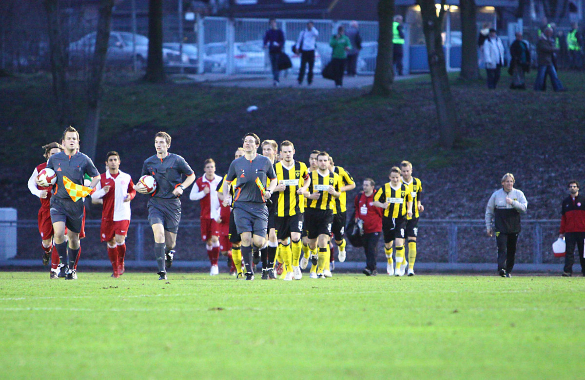 Eric van der Luer konnte vor 100 Zuschauern an der Essener Seumannstraße erneut auf die Dienste von Thomas Stehle zählen und auch Andreas Lasnik sammelte Wettkampfpraxis im U23-Team. Die jungen Alemannen erwischten den besseren Start und tauchten nach einer Viertelstunde erstmals gefährlich vor dem RWE-Gehäuse auf. Schattner legte die Kugel von der Grundlinie für Engelbrecht auf, dessen Schuss in letzter Sekunde noch abgeblockt werden konnte. Besser machten es die Schwarz-Gelben nach 34 Minuten, als Muhovic die Kugel geschickt für Lasnik durchstecken konnte, der das Auge für den mit geeilten Engelbrecht hatte. Der Torjäger der Tivoli-Reserve hatte keine Mühe, aus kurzer Distanz sein 9. Saisontor im 12. Einsatz zu erzielen – 0:1. Die erste Aachener Nachlässigkeit hätte jedoch schon wenige Minuten später zum Ausgleich geführt, doch Tokut vergab alleine vor Krumpen nahezu kläglich (37.).