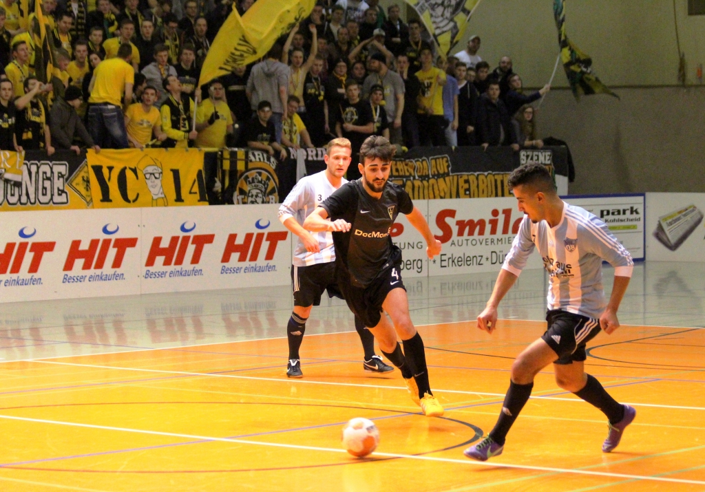 Der Auftakt auf dem Parkett verlief mühsam aber erfolgreich. In der mit 1.200 Zuschauern nahezu ausverkauften Halle brachte Weiss den FC Inde Hahn im ersten Duell nach zwei Minuten in Front. Kühnel glich zum 1:1-Pausenstand aus. Angiuli brachte die Tivoli-Kicker kurz nach dem Seitenwechsel in Front, doch Lambertz gelang fast postwendend der Ausgleichtreffer. Drei Minuten vor dem Ende nutzen die Alemannen eine Zeitstrafe gegen Hahn eiskalt aus und erzielten erneut durch Angiuli den Siegtreffer zum 3:2-Endstand.