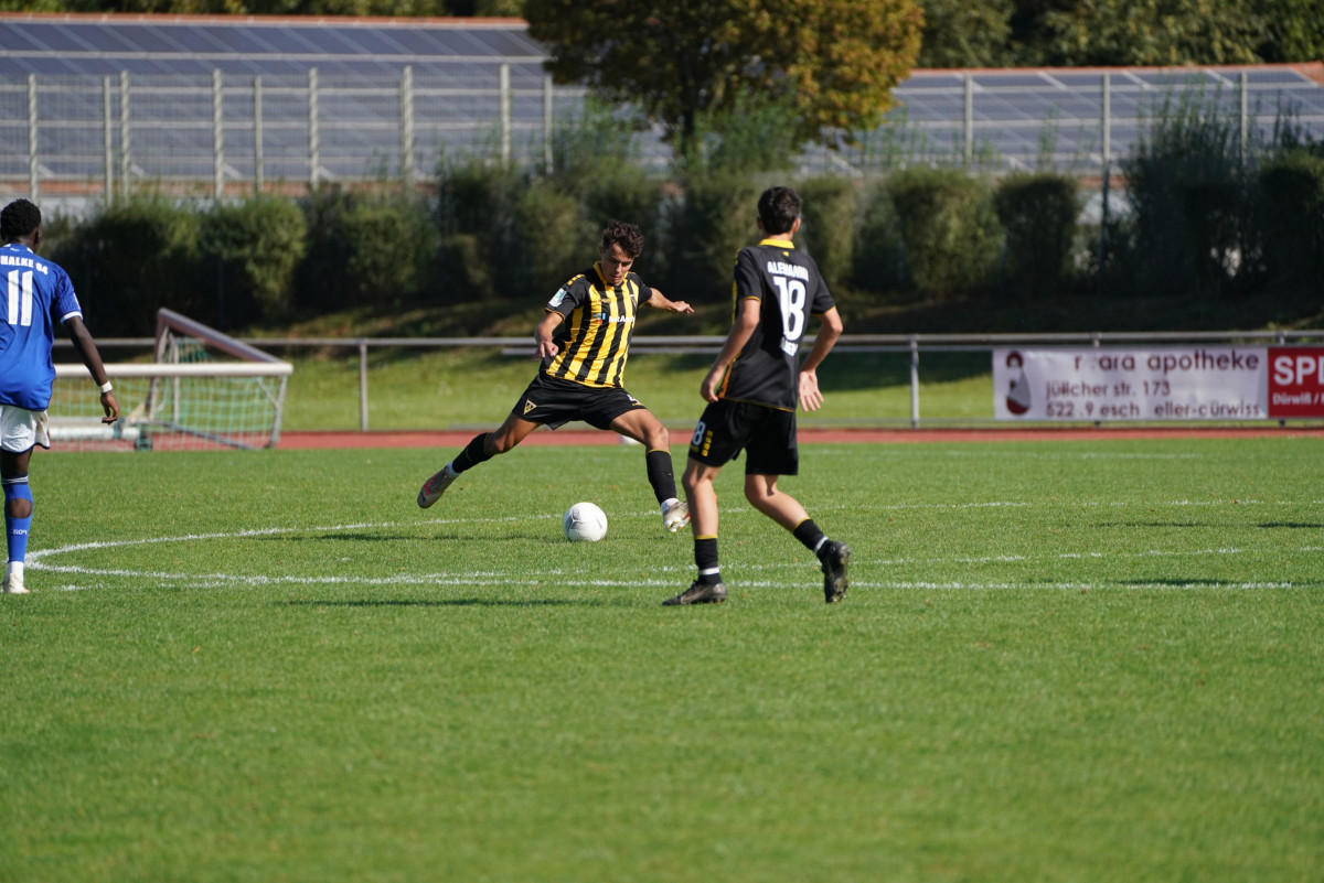 Nahezu tadellos verläuft aktuell die zweite Saisonhälfte der Alemannia-U19 in der Bundesliga West: Zwölf Punkte aus fünf Spielen sackte die zweitbeste Rückrundenmannschaft bisher ein. Durch das jüngste 2:0 beim MSV Duisburg belegt der Aufsteiger mittlerweile gar den fünften Tabellenplatz, es war der dritte Sieg in Folge für die Mannschaft von Trainer Vladyslav Moschenski. „Wir haben das Spiel in der ersten Halbzeit dominiert und waren die bestimmende Mannschaft mit Ball“, zog der Coach nach der Partie im Ruhrgebiet Bilanz. Für die Treffer am Sonntag sorgten Kapitän Aland Abdi mit einem direkten Freistoß aus 25 Metern (10.) sowie Travis Kpegouni in der dritten Minute der Nachspielzeit. In der 74. Minute hatten sich die Nachwuchs-Zebras noch selbst dezimiert, Julius Bugenhagen hatte Gelb-Rot gesehen. „Nach dem Platzverweis hätte ich mir mehr Kontrolle mit Ball gewünscht. Da waren wir in unseren Angriffen und Kontern zu wild und haben Duisburg durch zu viele Ballverluste Räume eröffnet“, musste Moschenski trotz des erneuten Erfolgserlebnisses seiner Schützlinge festhalten. Dennoch attestierte er seinem Team eine „tolle Entwicklung“ sowie einen „enormen Fortschritt im Vergleich zur Hinrunde“. Und noch einen Grund zur Freude hatte der U19-Trainer am Wochenende: A-Junior Leo Mirgartz durfte am Samstag gegen Gütersloh seinen ersten Kurzeinsatz in der Regionalliga-Mannschaft feiern. „Für solche Momente arbeiten mein gesamtes Trainerteam und natürlich die Spieler täglich hart“, zeigte sich Moschenski, dessen Truppe am Samstag (2.3.) um 11 Uhr Fortuna Düsseldorf empfängt, sichtlich stolz.