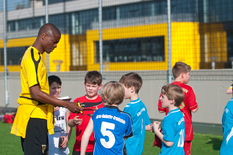 Ein weiteres Highlight am Donnerstag war der Besuch der Profis. Kevin Kratz und Seyi Olajengbesi besuchten das Schulturnier und waren von dem Talent der kleinen Fußballer beeindruckt. Die dritte und letzte Vorrunde des Turniers findet am Mittwoch, 21. März, auf den Kunstrasenplätzen des Tivoli-Parkhauses statt. Beginn ist um 15 Uhr.