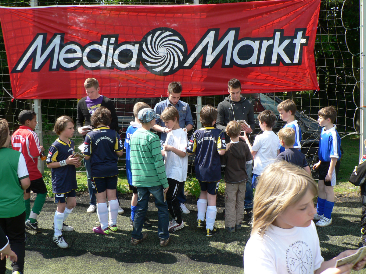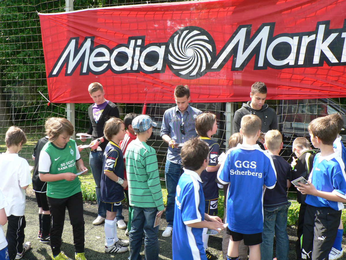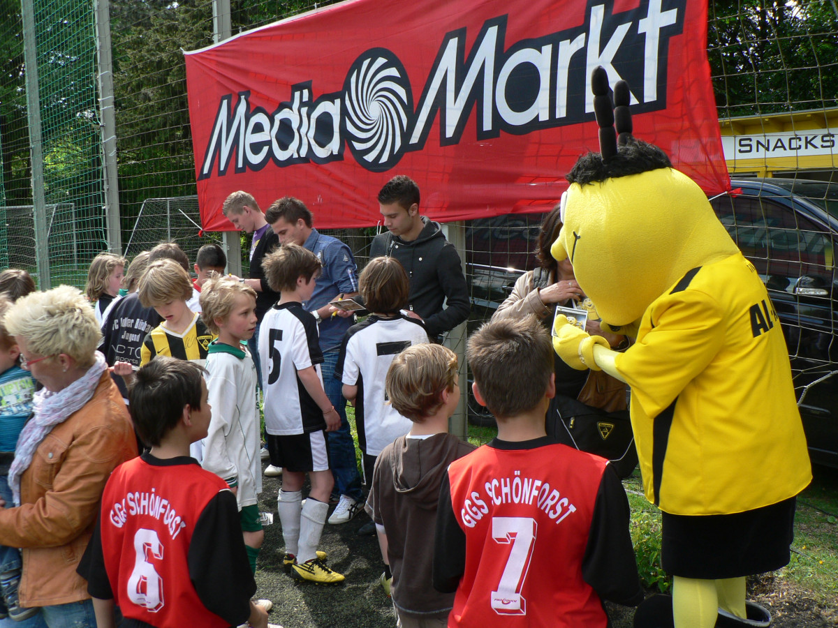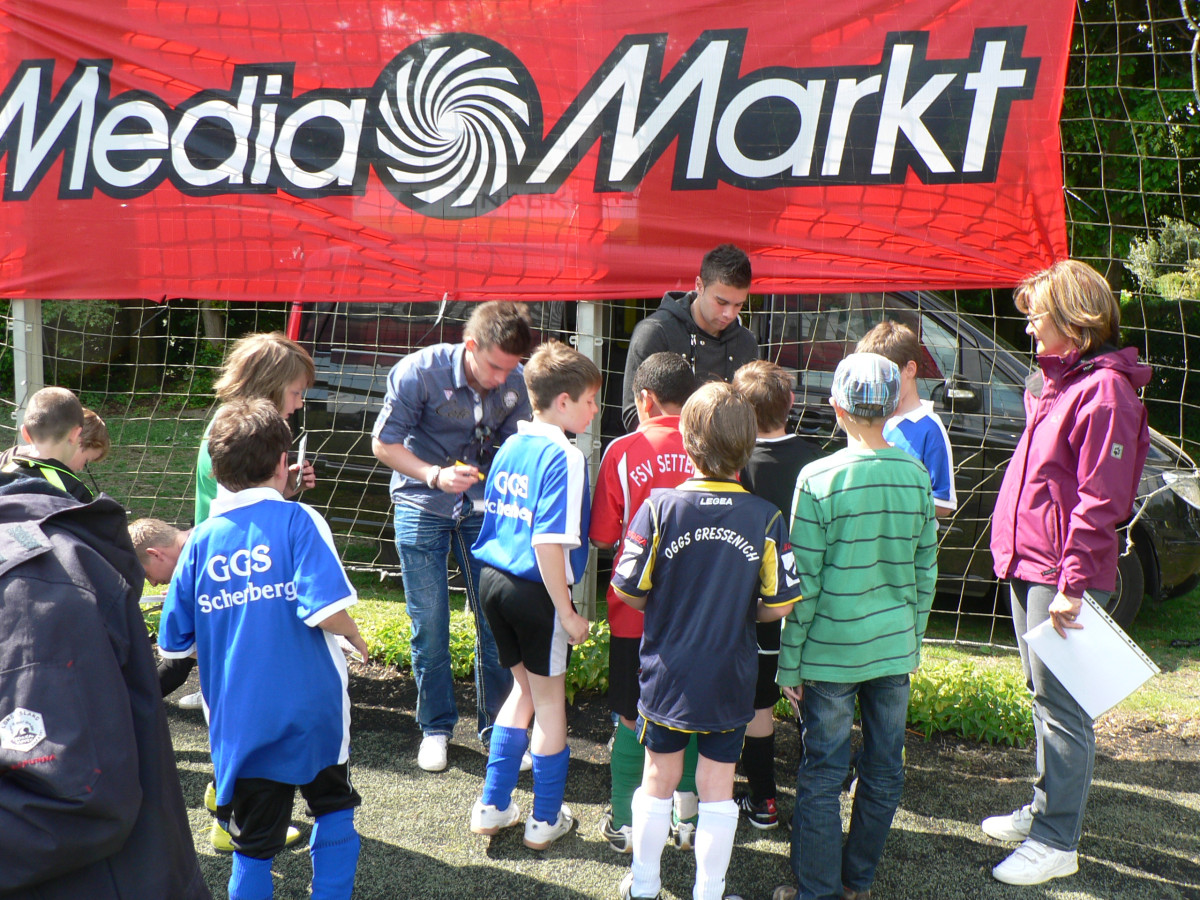 Am Mittwoch, 4. Mai 2011, kämpften am Tivoli die besten 19 Grundschul-Teams aus der Städteregion Aachen bei der Zwischenrunde des MediaMarkt Schulturnier um den Einzug ins Finale. Die besten sechs Teams dürfen im Vorfeld des letzten Heimspiels der Profis gegen Arminia Bielefeld auf dem Tivoli den diesjährigen Sieger ausspielen. Dementsprechend motiviert traten die jungen Kicker an und lieferten sich spannende Partien. Für Abwechslung sorgte der Besuch von Zoltán Stieber, Shervin Radjabali-Fardi und Tim Krumpen, die fleißig Autogramme schrieben und die Teams bei ihren Spielen anfeuerten. Auf das Grundschul-Team, das am 15. Mai das Turnier gewinnt, wartet ein 500 Euro-Gutschein vom MediaMarkt. Das zweit- und drittbeste Klassenteam darf sich auf den einen oder anderen Euro Preisgeld in Form eines Warengutscheins freuen, zusätzlich erhält jeder Finalteilnehmer einen MediaMarkt-Gutschein im Wert von 10 Euro.