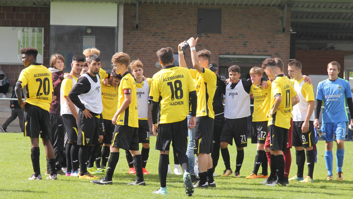 „Unsere Jungs haben leidenschaftlich gespielt und waren körperlich sehr präsent“, sagte Co-Trainer Stefan Beckers, der Udo Lipka an der Seitenlinie vertrat. Gegen den Nachwuchs aus der Domstadt durften die Aachener nach 14 Minuten zum ersten Mal jubeln. Etienne Höfer brachte die Schwarz-Gelben in Führung. Noch vor der Pause bauten die Alemannen ihren Vorsprung aus. Frederic Heitzer sorgte mit einem strammen Schuss in die lange Ecke für das 2:0 (28.). Im zweiten Spielabschnitt entwickelten zunächst die Gäste, die von der Ex-Nationalspielerin Inka Grings trainiert werden, mehr Druck und drängten die Aachener tief in die eigene Hälfte. Die Abwehrreihe um Mannschaftskapitän Paul Klein stand sattelfest und konnte die Null halten. Die endgültige Entscheidung fiel dann wenige Augenblicke vor dem Abpfiff. Der eingewechselte Berkay Gökpinar sah, dass der Kölner Torwart weit vor seinem Gehäuse stand und hob den Ball aus über 30 Metern zum 3:0 ins Netz (77.).