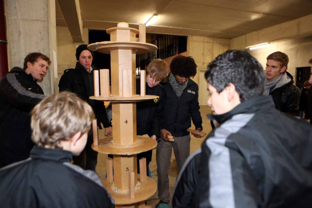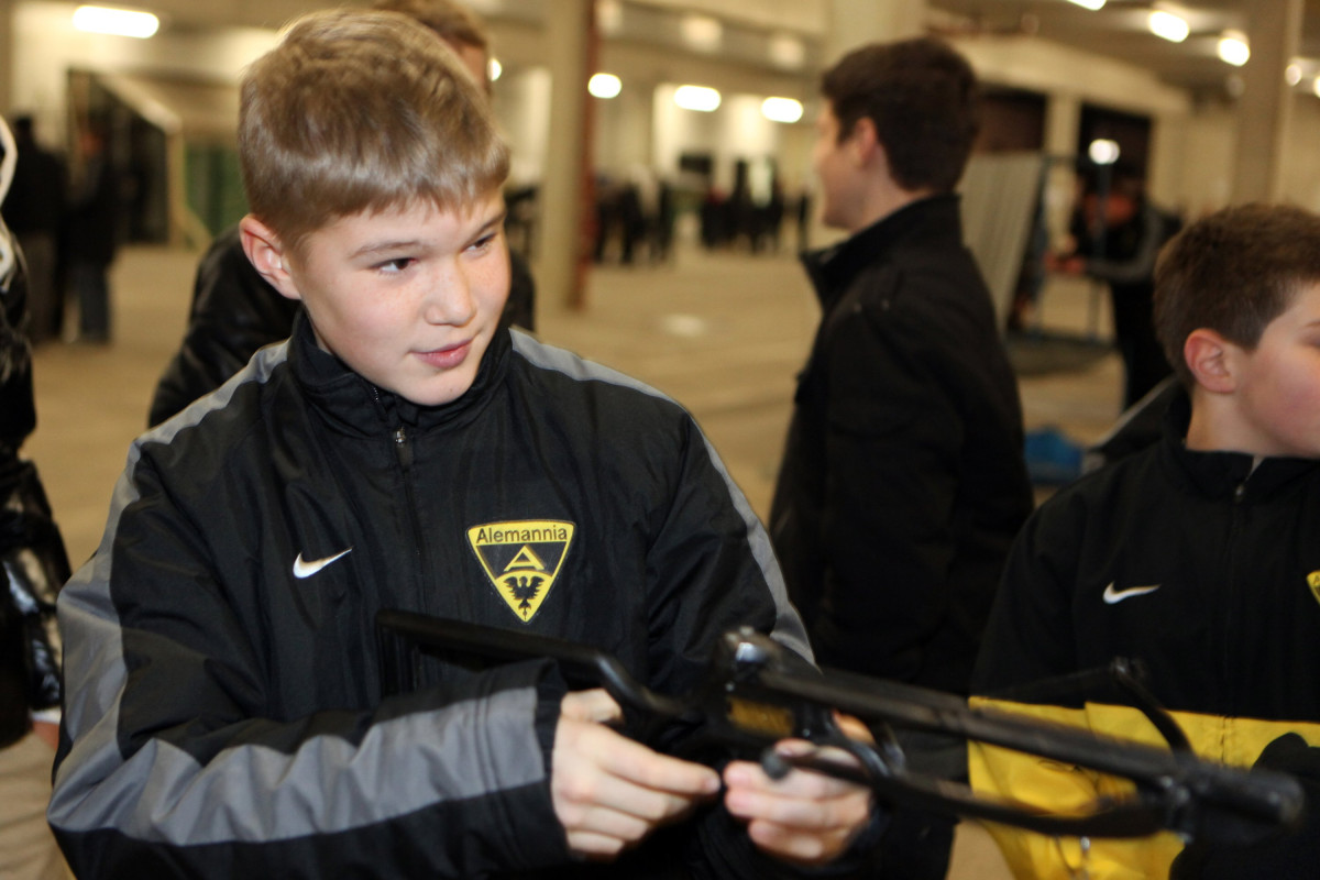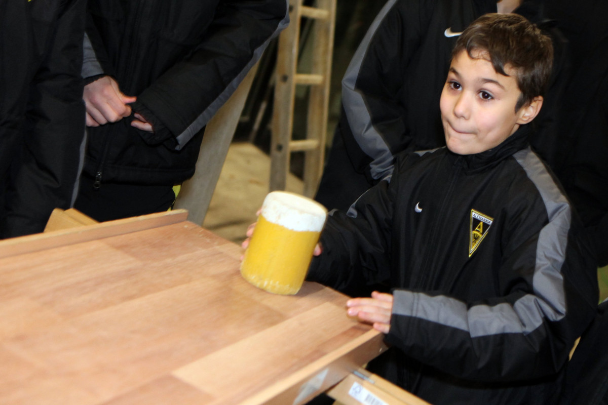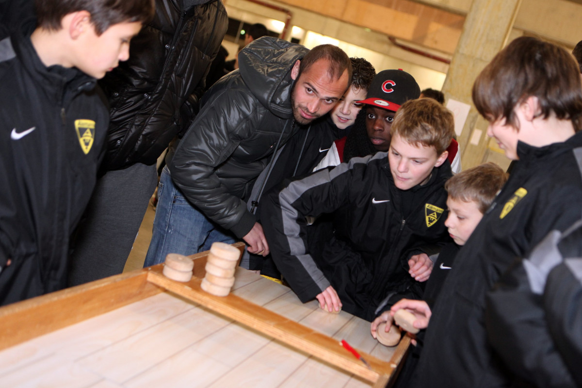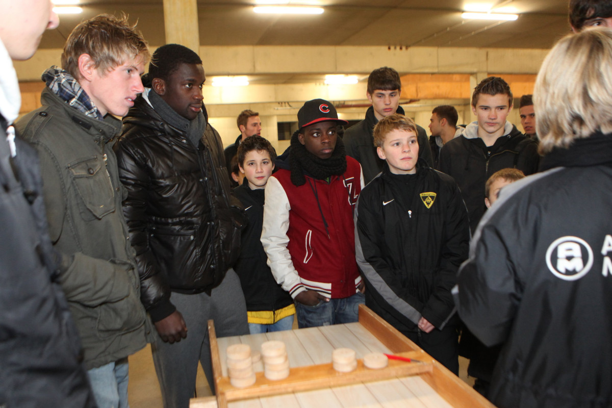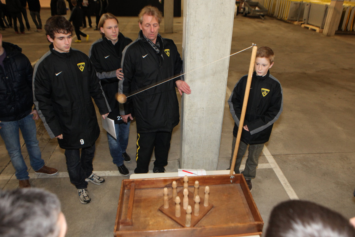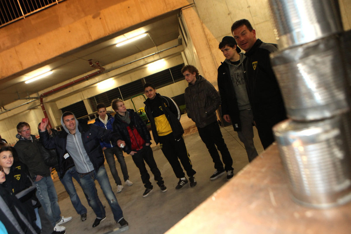 Vierzehn Teams wurden aus den 160 Spielern zusammengestellt, die auf einem Stationsparcours im und rund um das Stadion viele interessante und lustige Spiele und Aufgaben zu bewältigen hatten. Geschicklichkeit, Ballgefühl, Schnelligkeit und Orientierung waren nur einige Anforderungen, die die Gruppen beim Dosenwerfen, Minigolf, Zielschießen, Kegeln, gemeinsamen Skifahren und vielen anderen Spielen zu meistern hatten. Das Besondere dabei: Jedes Team war gemischt zusammengestellt und bestand also aus Spielern jeder Mannschaft. Schnell konnte man merken, wie sich in den Teams Ehrgeiz und Teamgeist entwickelten und es war schön zu beobachten, wie gegenseitig Tipps und Hilfestellung gegeben wurden. Die Großen kümmerten sich um die Kleinen und es ging teilweise richtig lautstark zur Sache. Oft sorgten die Kleinen für die Punkte in ihrem Team.
