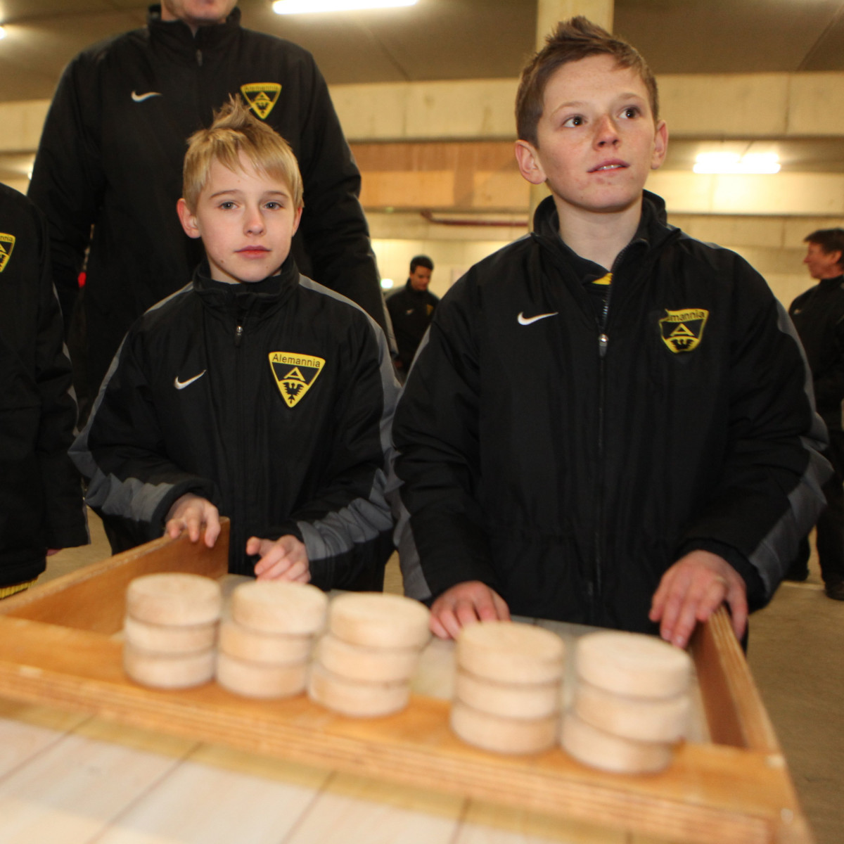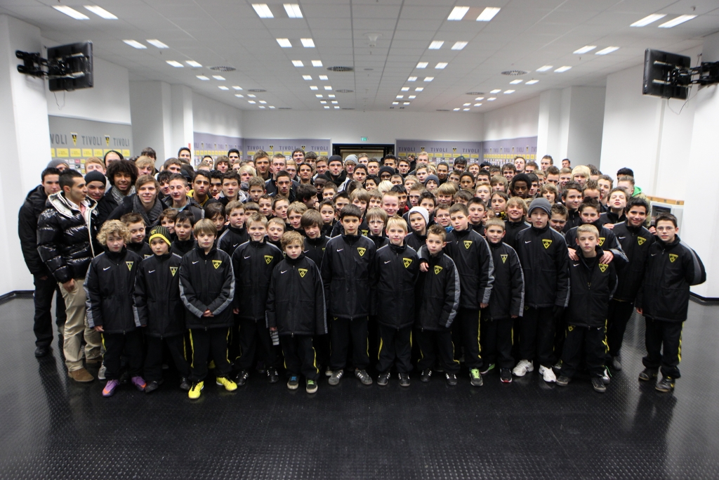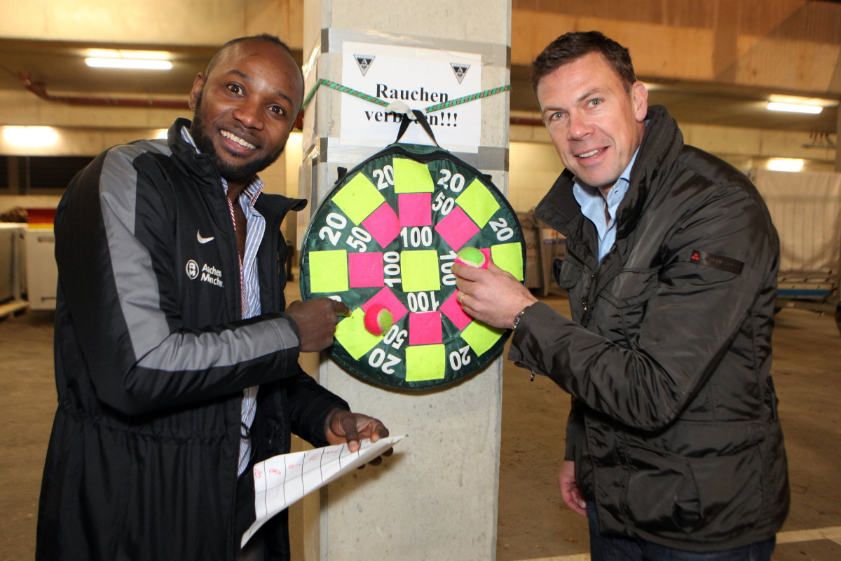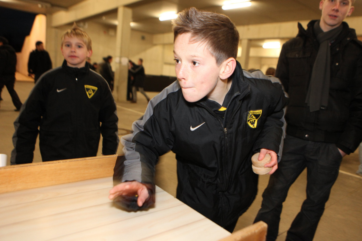 Sportdirektor Erik Meijer begrüßte die Teams von U10 bis U19 in Mixed Zone und Spielertunnel des Tivoli. Für viele der Nachwuchskicker ein einmaliges Erlebnis und Gelegenheit, im Kabinentrakt vom Profisein zu träumen. Meijer dankte allen Alemannen und Helfern und wünschte ihnen mit motivierenden Worten für das neue Jahr viel Erfolg. Soweit dann aber auch genug der offiziellen Worte, die man mit einem Neujahrsempfang verbindet, denn nun sollte es einige Überraschungen geben und es wurde sportlich. Der Organisator des Neujahrsempfangs Maurice Verbunt, der die U15 trainiert, übernahm das Wort. Mit vielen fleißigen Helfern hatte er ein tolles, abwechslungsreiches Programm für die Spieler ausgearbeitet, das einen spaßigen und ereignisreichen Abend bereitete.