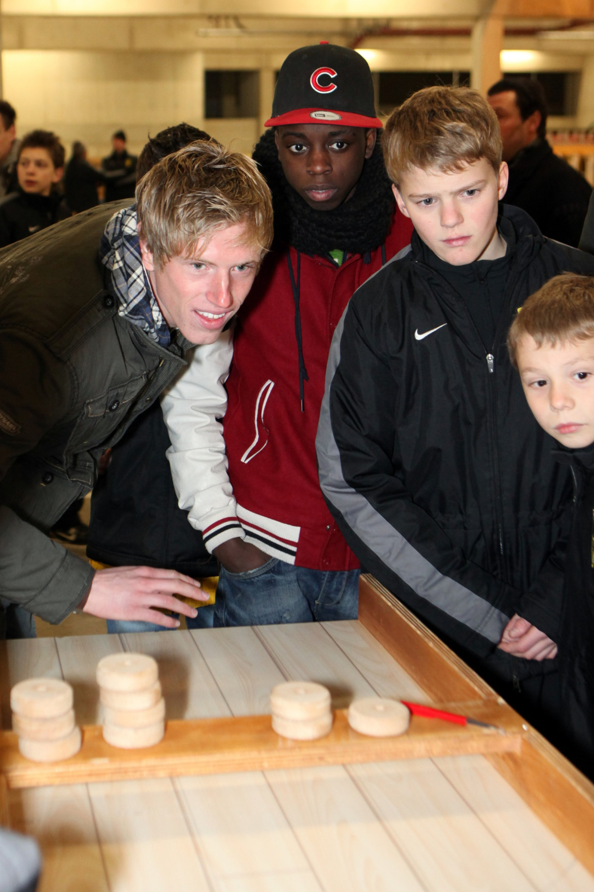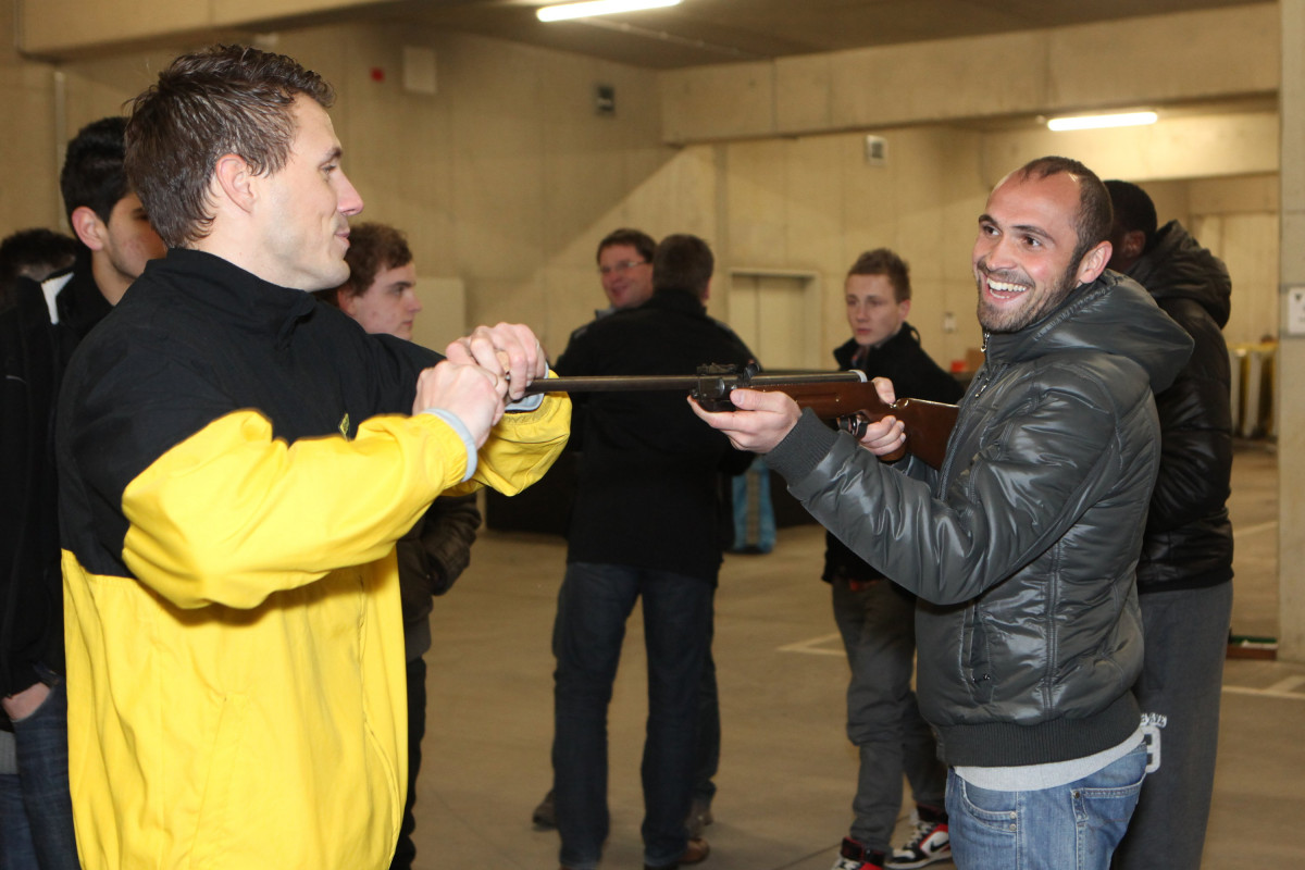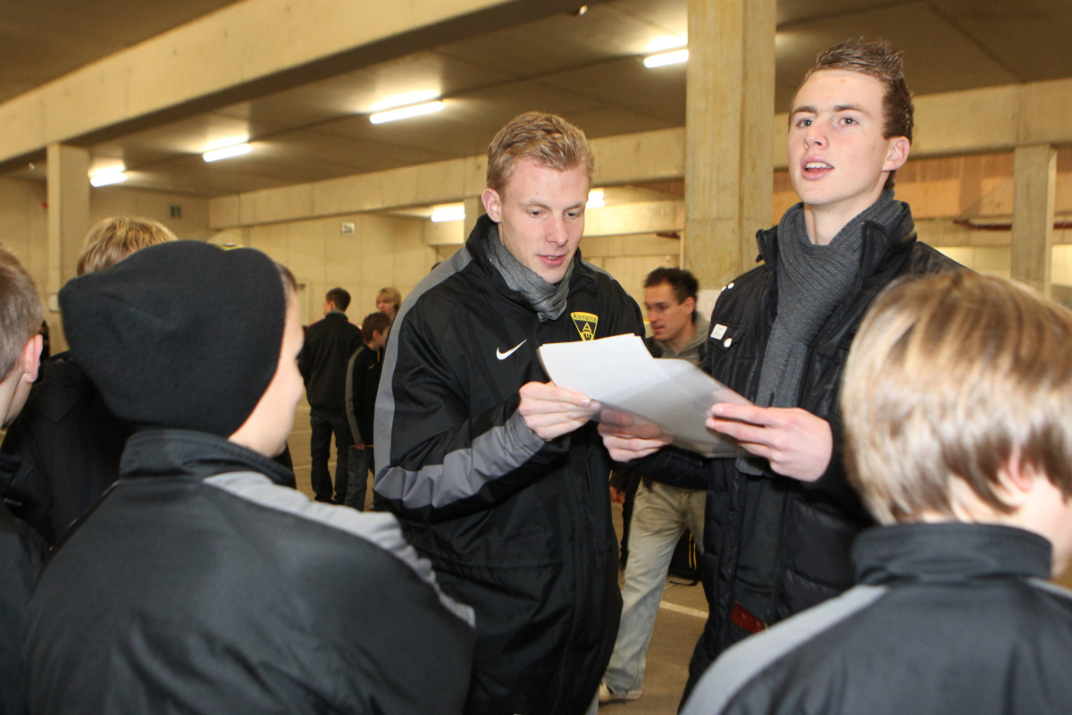 Sportdirektor Erik Meijer begrüßte die Teams von U10 bis U19 in Mixed Zone und Spielertunnel des Tivoli. Für viele der Nachwuchskicker ein einmaliges Erlebnis und Gelegenheit, im Kabinentrakt vom Profisein zu träumen. Meijer dankte allen Alemannen und Helfern und wünschte ihnen mit motivierenden Worten für das neue Jahr viel Erfolg. Soweit dann aber auch genug der offiziellen Worte, die man mit einem Neujahrsempfang verbindet, denn nun sollte es einige Überraschungen geben und es wurde sportlich. Der Organisator des Neujahrsempfangs Maurice Verbunt, der die U15 trainiert, übernahm das Wort. Mit vielen fleißigen Helfern hatte er ein tolles, abwechslungsreiches Programm für die Spieler ausgearbeitet, das einen spaßigen und ereignisreichen Abend bereitete.