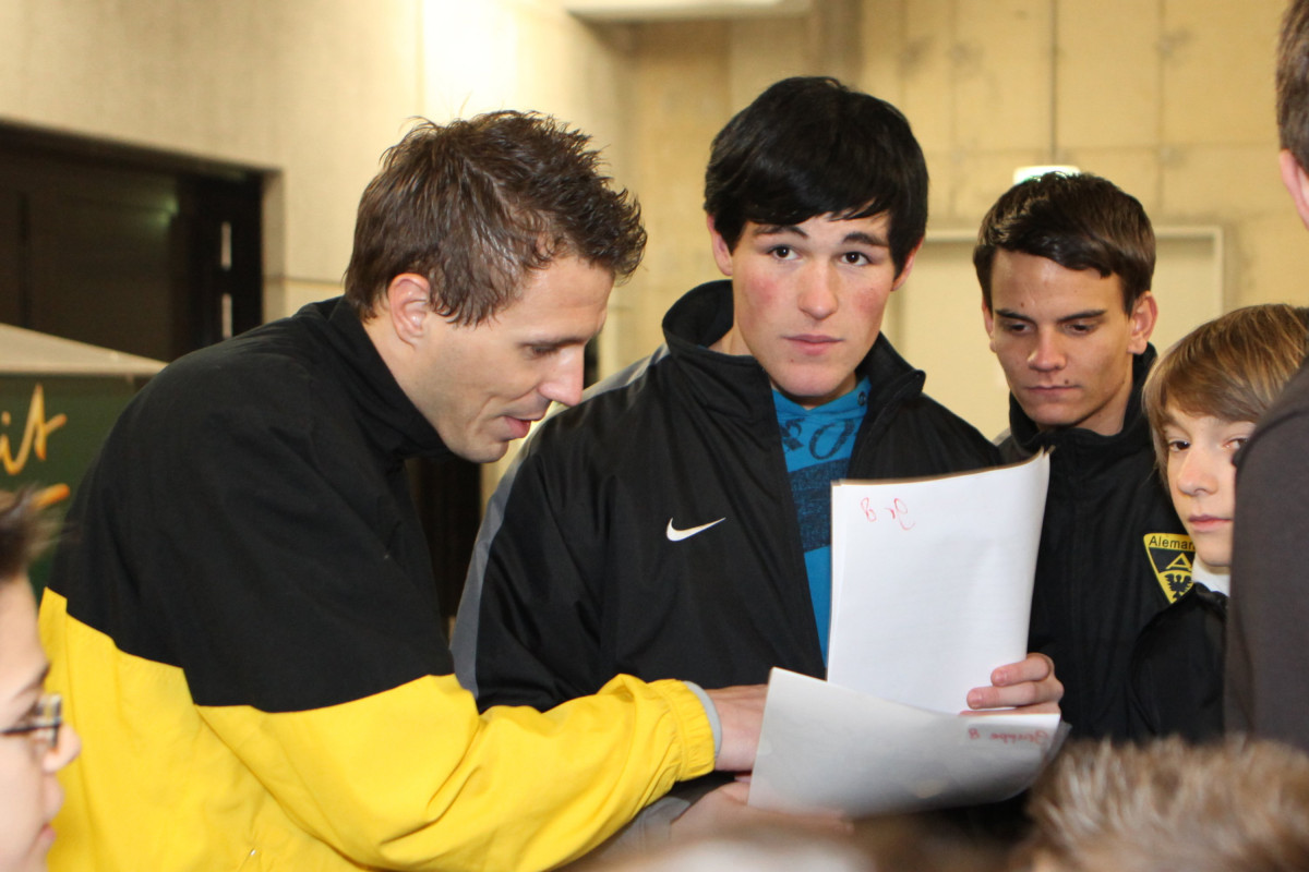 Dass dabei auch das Trainerteam mit Peter Hyballa und Eric van der Luer und viele Profis, die zuvor mit großer Begeisterung auch die Spielstationen durchlaufen und die Nachwuchskicker angefeuert hatten, anwesend waren, gab dem Neujahrsempfang den gewünschten familiären Alemannia-Charakter. Auch die beiden Neuzugänge Shervin Radjabali-Fardi und Bilal Cubukcu machten die ersten Bekanntschaften und wurden genauso mit vielen Fragen gelöchert wie die Profi-Paten der Alemannia Jugendteams. Wieder einmal zeigte sich durch diese gelungene Veranstaltung die enge Bindung zwischen den Profis und dem Nachwuchsleistungszentrum. Gegen 20.30 Uhr ging dann ein wirklich schöner gemeinsamer Abend zu Ende und man kann wohl sicher sein, dass dieses Event Tradition auf dem Tivoli werden wird.