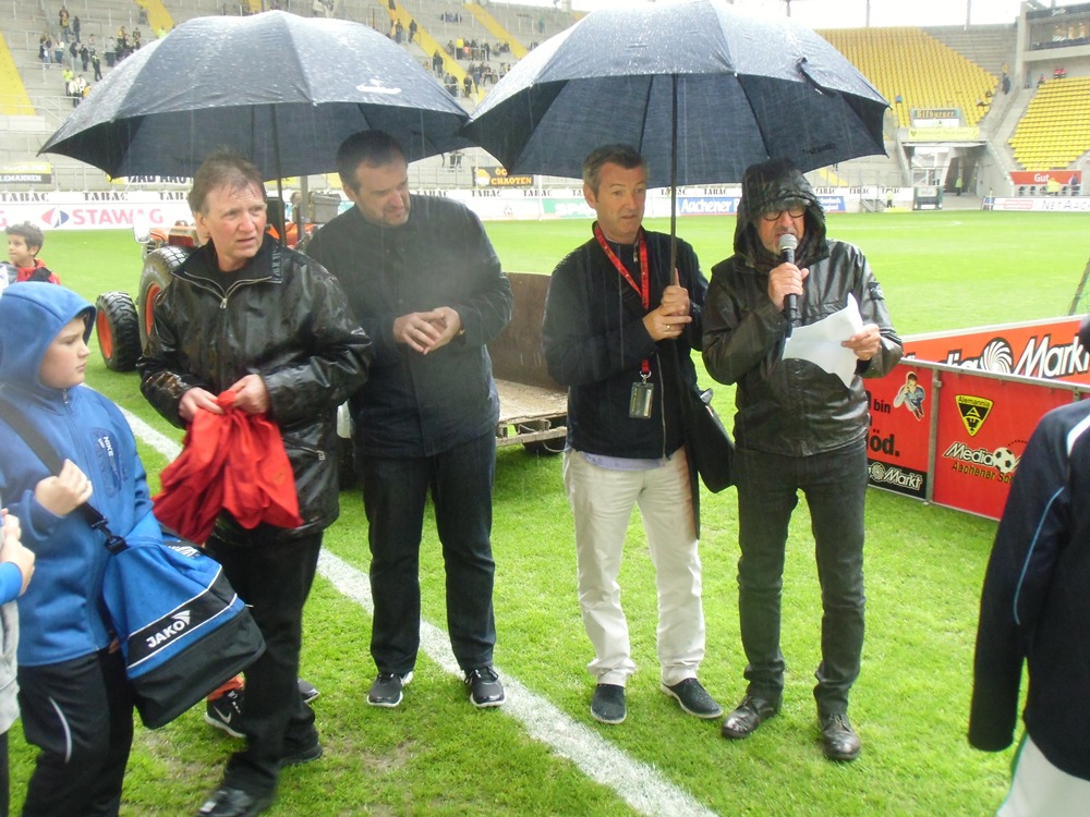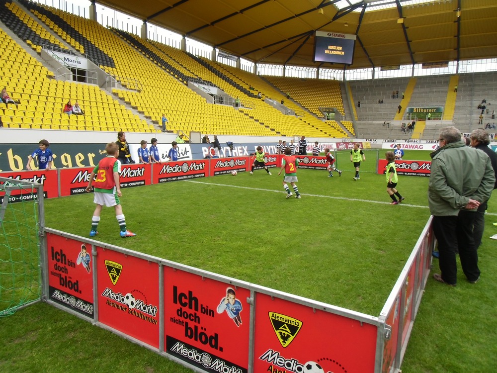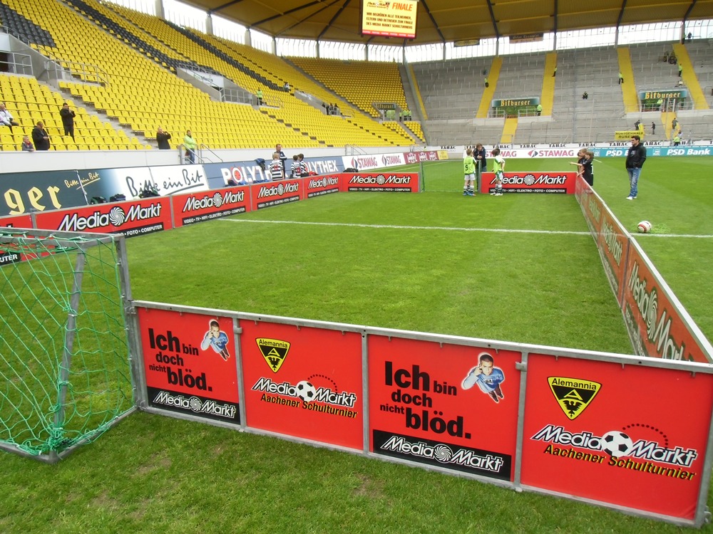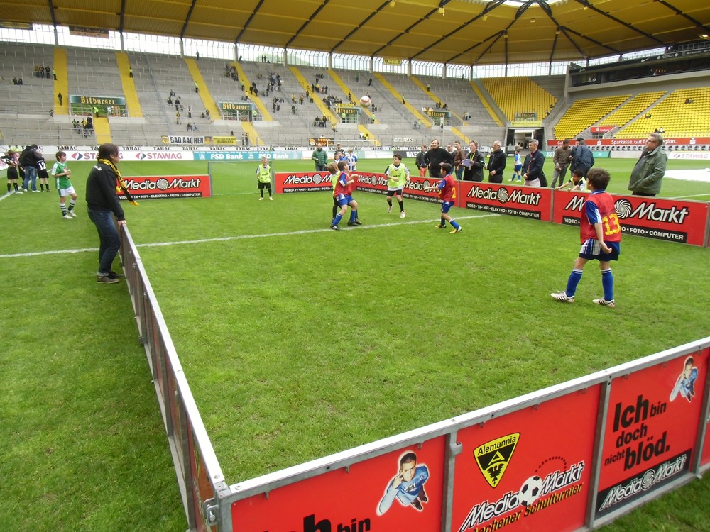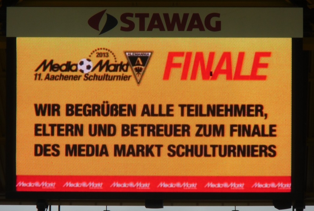 In den beiden Halbfinalpaarungen gingen Schönforst (2:1 über „Dreamteam) und die „Real Football Boys“ (3:1-Erfolg gegen „Black Men“) als strahlende Sieger hervor und zogen damit in das große Finale ein. Unterstützt einigen Alemannia-Profis an der Bande behielten die „Real Football Boys“ auch im Endspiel die Oberhand und gewannen knapp mit 1:0 gegen die Auswahl aus Schönforst. Das Siegerteam konnte sich über einen Geschenkgutschein in Höhe von 300 Euro vom Media Markt freuen. Doch auch das zweit- und drittbeste Klassenteam ging nicht leer aus. Beide Mannschaften bekamen ebenfalls einen Warengutschein. Zusätzlich erhielt jeder Finalteilnehmer einen Media-Markt-Gutschein im Wert von 10 Euro.