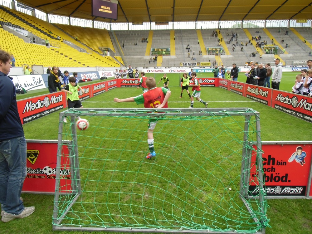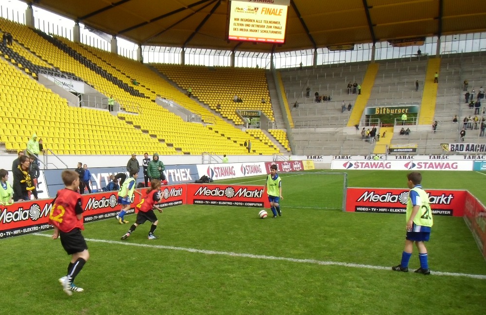 Am Ende war der Jubel bei den jungen Kickern aus Stolberg-Mausbach groß. Unter den Augen von zahlreichen Eltern und Fans im Tivoli-Stadion gewann das Team „Real Football Boys“ am Samstag, 11. Mai 2013, souverän alle Endrundenspiele und stand damit als Sieger des 11. Media Markt Schulturniers fest.