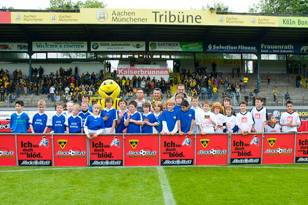 Dort mussten sich sich die Teams zuerst im Modus Jeder gegen Jeden messen, bevor das Halbfinal und anschließend die Spiele um Platz Drei und Eins auf dem Programm standen. Die Kinder lieferten sich vor toller Kulisse packende Duelle, aus denen die Mannschaft AC-Schönforst - Schwalbenmafia 1 als Sieger hervorging. Sie erhielten vom MediaMarkt Aachen 500 Euro für die Klassenkasse sowie einen Gutschein für ein Feriencamp der Fußballschule Do It Soccer University. Die Zweitplatzierten, die wilden Zwerge Breinig, sicherten sich 200 Euro, die Dritten, die Dietrich-Bonnhoeffer Devils, 100 Euro. Außerdem wurde jedem Kind, das an der Endrunde teilgenommen hatta, ein 10 Euro-Gutschein für den MediaMarkt überreicht.