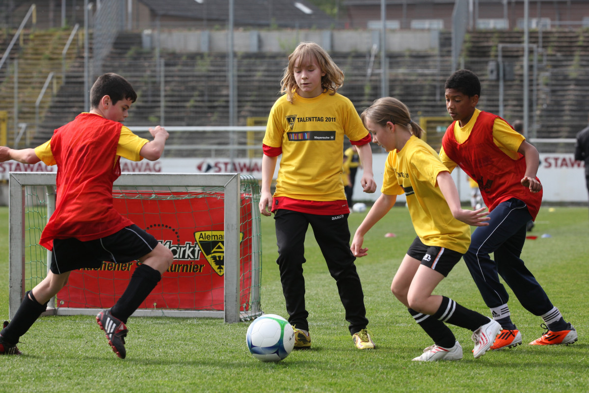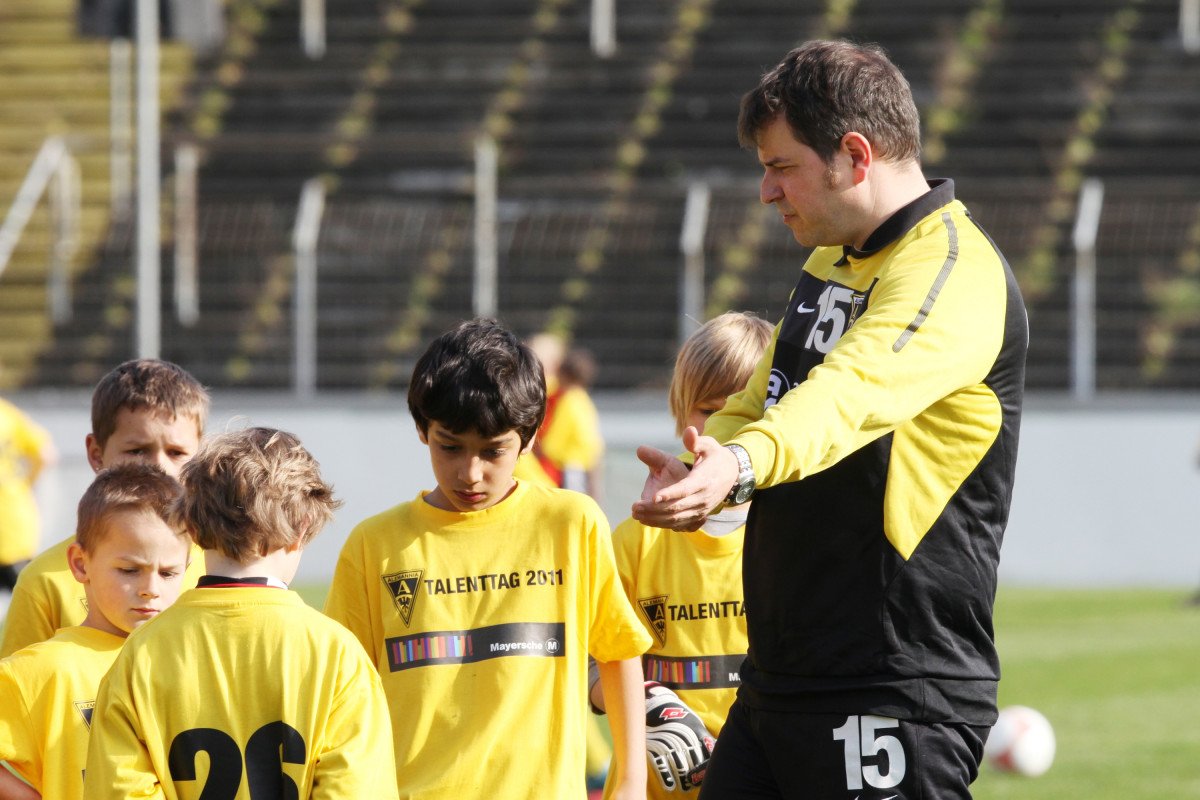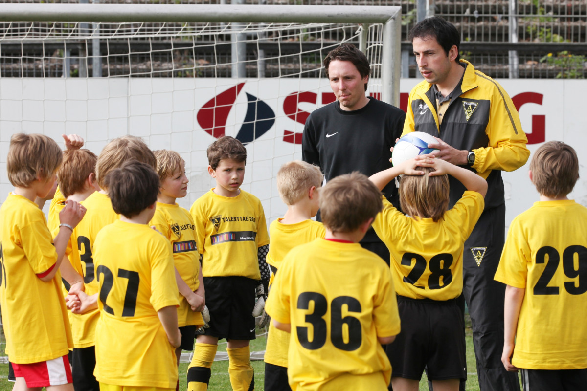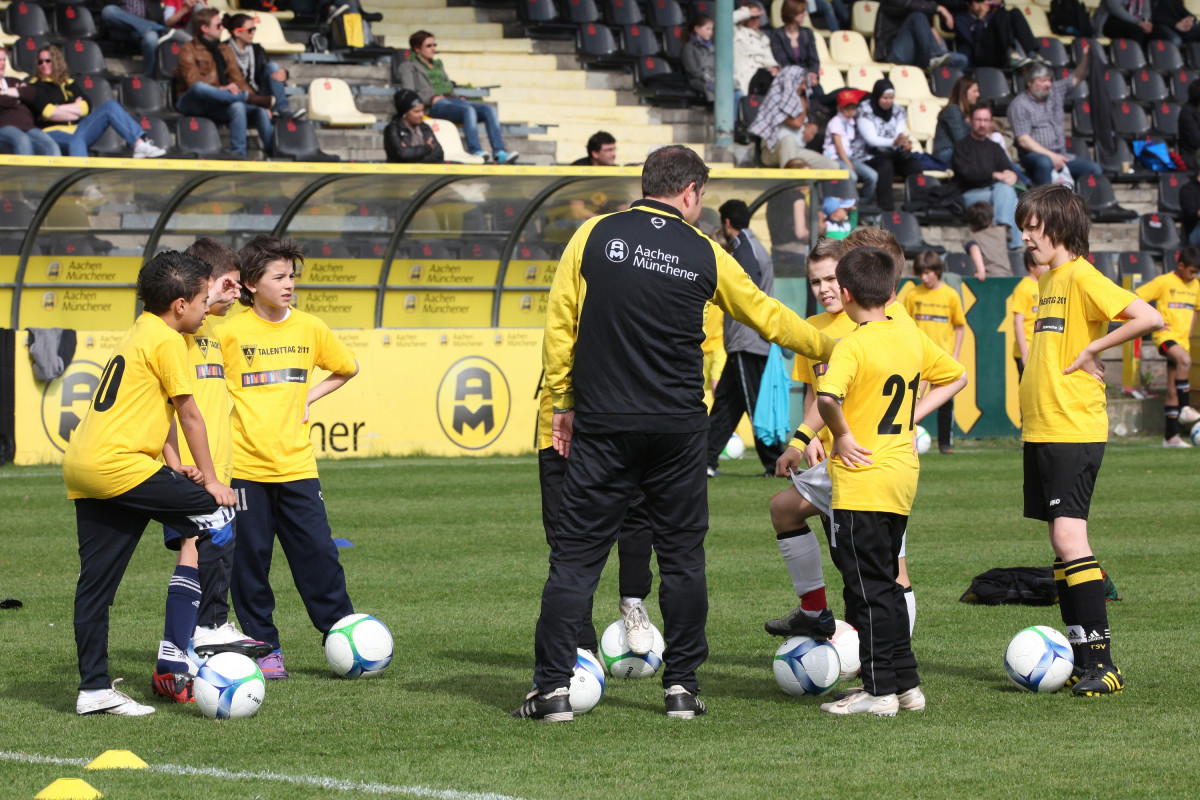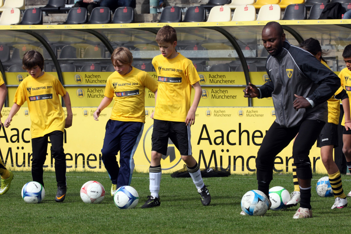 Was haben Alper Uludag, Marco Höger und Manuel Junglas gemeinsam? Die Antwort ist schnell gefunden: Sie alle durchliefen einst die Jugendmannschaften der Alemannia. Heute sind die Youngster echte Leistungsträger im Profiteam, ihr Traum vom Durchbruch hat sich erfüllt. Der Weg dorthin ist kein leichter, doch alle vier sind gute Beispiele dafür, dass der eigene Nachwuchs durchaus den Sprung ins Profigeschäft schaffen kann. Genau davon träumten am Wochenende auch rund 160 fußballbegeisterte Nachwuchskicker aus Aachen und Umgebung, die im Rahmen des diesjährigen Talenttags den Weg zum alten Tivoli gefunden hatten, um ihr Können unter der Anleitung zahlreicher Jugendtrainer der Alemannia unter Beweis zu stellen.