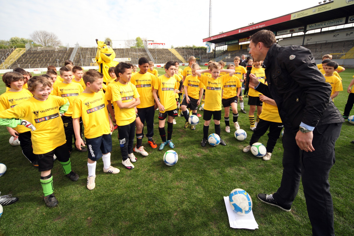 Die Nachwuchsförderung hat sich die Alemannia jedenfalls auf die Fahne geschrieben, bereits seit drei Jahren findet zweimal jährlich der große Talenttag statt. Die Resonanz wächst von Mal zu Mal, neben aufstrebenden Talenten aus Aachen finden auch regelmäßig junge Kicker aus dem benachbarten Belgien und der Niederlande den Weg an den Tivoli. Die Anforderungen an die kleinen Ballkünstler sind hoch, doch seit Jahren sind die Talenttage ein großer Erfolg. „Es kommt immer wieder vor, dass wir auf einzelne Spieler aufmerksam werden. Wer positiv auffällt, wird in der Regel zu einem weiteren Probetraining des jeweiligen Jahrgangs eingeladen“, meint Rodtheut.