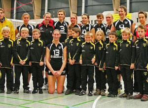 Doch nicht nur die kleinen Kicker vom Tivoli hatten sich aufgemacht, um die Volleyballerinnen anzufeuern. Auch die Profis Kristian Nicht und Nico Herzig statteten der ersten Damenmannschaft einen Besuch ab. Es ist und bleibt eben eine große Alemannia-Familie…