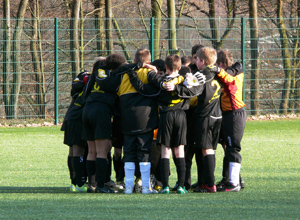 Zu Beginn fehlten dann aber noch die Ideen im Spiel nach Vorne, aber nach und nach erspielten sich die Aachener ein klares Übergewicht. Der freie Mann im Offensivspiel wurde von nun an besser gesehen und der Ball lief oftmals mit wenigen Ballkontakten von Position zu Position. Somit wurde der Gegner ständig vor neue Probleme gestellt und mit zunehmender Spielzeit drängten die kleinen Kartoffelkäfer auf den Führungstreffer. Wie so oft im Fußball konnte dieser aber erst nach einer Standardsituation erzielt werden. Ein lang in Richtung Tor gespielter Freistoß wurde vom Wattenscheider Abwehrspieler nur mit dem Scheitel erwischt und von dort schlug das runde Leder im gegnerischen Gehäuse zu völlig verdienten 1:0 ein. Kurz darauf konnte sich das Aachener Mittelfeld, über mehrere Stationen gespielt, mehr Platz verschaffen. Michael Uhlemann startete entschlossen in eine Lücke im Zentrum der gegnerischen Abwehr und passte Hamza Saghiri den Ball genau in den Lauf des startenden Mitspielers. Kein Abseits und Michael Uhlemann ließ sich die Chance zum 2:0-Führungstreffer und gleichzeitig Halbzeitstand nicht nehmen.