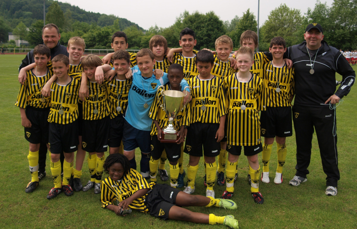 Riesengroß war die Freude als Kapitän Simon Lauscher den Siegerpokal überreicht bekam. Die Mannschaft feirte zusammen mit Eltern und diesen Erfolg in Lohmar noch ausgiebig.