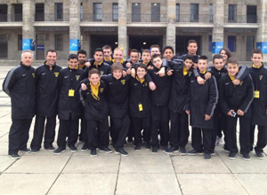 Am Osterwochenende trat die U15 der Alemannia beim größten C-Junioren-Turnier der Welt, dem Nike Premier Cup, in Berlin an, um das Deutschlandfinale auszuspielen. Bereits am Freitag reiste der Tross der Schwarz-Gelben in die Hauptstadt, um am Abend bei der großen Eröffungsfeier und Gruppenauslosung im Berliner Olympiastadion teilzunehmen. Hertha-Profi Maik Franz nahm die Auslosung vor und bescherte den Tivoli-Kickern mit Werder Bremen, Hannover 96 und dem VfL Bochum eine schwere Aufgabe.