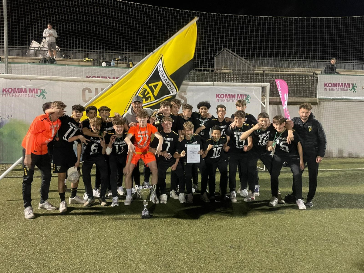 Am Karfreitag machten sich die U15 und U16 von Alemannia Aachen gemeinsam auf den Weg nach Malgrat de Mar in Spanien, um am dortigen Copa Maresme des Veranstalters KOMM MIT teilzunehmen. Nach der Ankunft hatte der 45-köpfige Tross zunächst noch ein paar Tage frei und konnte bei herrlichem Wetter ordentlich Sonne und Kraft für die anstehenden Turniere tanken. Beide Teams konnte ihre jeweilige Vorrunde von Dienstag bis Donnerstag souverän gestalten und zogen jeweils als Gruppenerster in die K.O.-Runde ein, welche am Freitag ausgespielt wurde. Im Viertelfinale bezwang unsere U15 den SC Eintracht Oberursel mit 5:0, während die U16, die am U17-Turnier teilnahmen, durch einen 3:0-Sieg gegen DJK Bad Homburg ebenfalls ins Halbfinale einzog. Im Halbfinale siegte die U15 mit 5:1 gegen die SG Wiking Offenbach, die U16 sicherte sich mit einem 6:0 gegen die JSG Riedstadt das Finalticket.