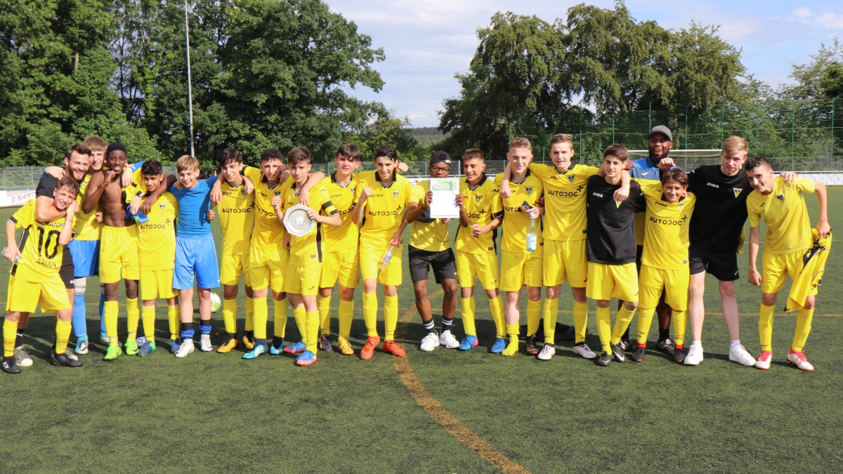 Großer Jubel bei den U15-Junioren von Alemannia Aachen: Im Endspiel um die Mittelrhein-Meisterschaft setzte sich das Team von Trainer Kristopher Fetz gegen den FC Wegberg-Beeck durch. Janis Perske und Nazif Tchadjei trafen im Finale auf der Sportanlage von Jugendsport Wenau für die Schwarz-Gelben.