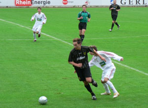 Als die Aachener Hintermannschaft in der 35. Minute wieder einmal unnötig den Ball vertändelte, nutzte Kölns Nguisani die Verwirrung, schnappte sich das Leder und schloss aus spitzem Winkel zur verdienten 1:0-Pausenführung ab.