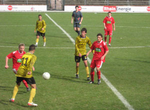 Die Schwarz-Gelben hatten zu Beginn der Partie, Schwierigkeiten ins Spiel zu finden. Sie ließen die wenigen Torchancen ungenutzt und kassierten in der 19. Minute das 0:1. Die A-Junioren konnten sich aber zunehmend steigern und eine gut stehende Abwehr verhinderte, dass die Kölner die Führung ausbauten. In der zweiten Halbzeit waren die Alemannen insgesamt klar besser, obwohl sie kurz nach der Pause schon das unglücklich gefallene 0:2 verkraften mussten. Die zweite Hälfte war von vielen Chancen für die Schwarz-Gelben gekennzeichnet, die jedoch erst in der 84. Minute den 1:2-Anschlusstreffer erzielten. „Insgesamt ist das Ergebnis schon in Ordnung, vor allem wenn man bedenkt, dass wir mit dem amtierenden Meister gegen eine Mannschaft gespielt haben, gegen die wir vor einigen Wochen noch kaum eine Chance gehabt hätten. Schade nur, dass der Anschlusstreffer erst so spät gefallen ist, sonst hätten wir vielleicht noch einen Punkt mitnehmen können“, so Trainer Heitmann nach der Partie. „Ich bin mit der Entwicklung meiner Mannschaft sehr zufrieden, wir sind auf dem richtigen Weg“, so Heitmann weiter. Am kommenden Sonntag, 2. November, beim Heimspiel gegen Bergisch Gladbach wieder auf drei Punkte hofft.