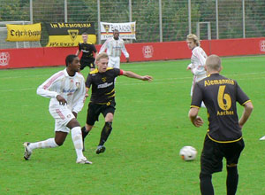 Die Aachener bewiesen Moral und gingen noch vor der Pause erneut in Führung. Nach einer Ecke stieg Ericyas am Höchsten und köpfte den Ball ins gegnerische Gehäuse (30.). Mit dem knappen 2:1-Vorsprung ging es in Halbzeit 2. Nach nur zehn Minuten waren alle guten Vorsätze über den Haufen geworfen. Nach einem zuschwierigen Anspiel kurz vor dem Sechzehner zog ein Leverkusener ab und markierte den Ausgleich zum 2:2.