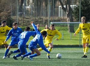 Der Tivoli-Nachwuchs musste mit Marco Quotschalla und Christoph Lambertz den Ausfall zweier wichtiger Säulen kompensieren und hatte das Spielgeschehen dennoch jederzeit im Griff. Nach einem von Haas verlängerten Holtby-Freistoß erzielte Emil Miljkovic – am vergangenen Sonntag bereits Doppeltorschütze beim 2:2 in Duisburg - nach einer halben Stunde aus kurzer Distanz die Aachener Führung. Schnier, Junglas und Miljkovic vergaben noch vor dem Wechsel weitere gute Gelegenheiten zum möglichen 2:0.