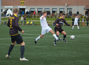 Der erste Aussetzer seines Teams bereits nach zehn Minuten: Kadir Erciyas spielte Düsseldorfs Mittelstürmer Gaus den Ball vollkommen unbedrängt in den Fuß, so dass dieser keine Probleme hatte das Leder im Aachener Tor unterzubringen – 0:1. Von diesem Schock erholte sich der Aachener Nachwuchs nur sehr langsam. Erst nach rund einer halben Stunde erspielte sich die Högner-Elf die erste nennenswerte Torchance: Nach einer guten Einzelleistung schoss Dominik Lenzen knapp über den Düsseldorfer Kasten (31.). Fünf Minuten später versuchte sich Marc Wollersheim. Der Angreifer scheiterte jedoch an Fortunas Keeper Boczek. Obwohl die Alemannen Oberwasser bekamen, folgte noch vor der Pause der nächste Rückschlag: Eine Uneinigkeit im eigenen Sechzehner versuchte Waldemar Schattner auszubügeln. Da der Ball aber nicht weit genug flog, staubte Königs zum 2:0 ab.