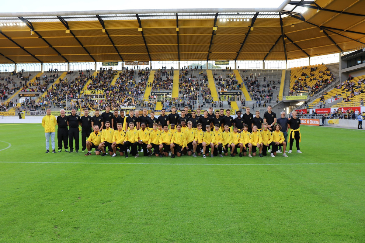 Für die Nachwuchsfußballer war es der schöne Abschluss einer erfolgreichen Spielzeit. Die U15 und U19 von Alemannia Aachen wurden am vergangenen Freitag für deren Aufstiege mit viel Applaus vom Aachener Publikum auf dem Tivoli geehrt. Im Rahmen des zweiten Heimspiels der Profimannschaft gegen den SC Wiedenbrück richtete Stadionsprecher Robert Moonen Glückwünsche an die Trainer sowie Spieler beider Teams.