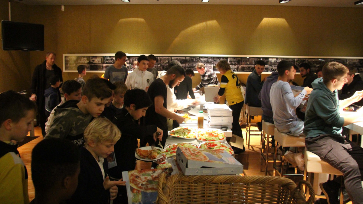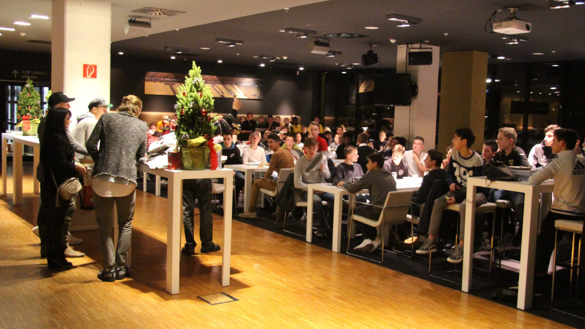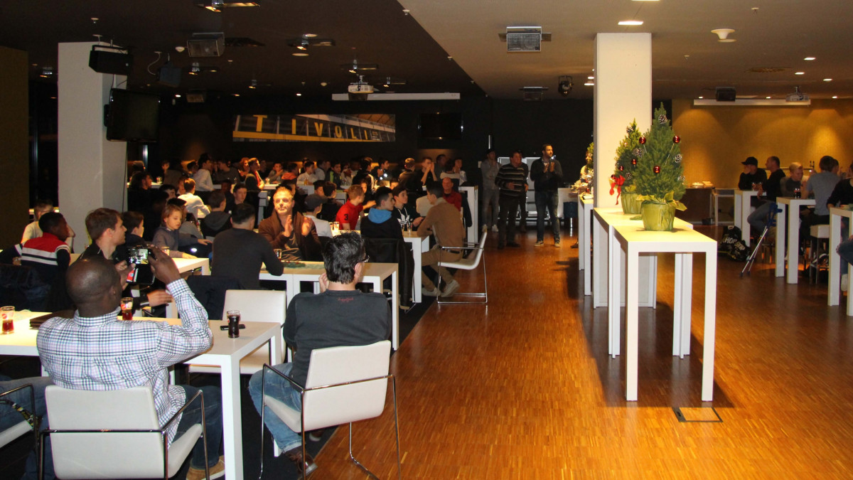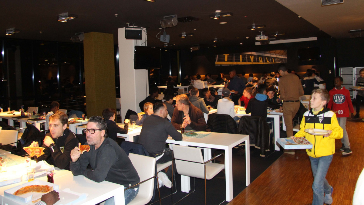 Mit dieser Veranstaltung setzte der Förderkreis Alemannia Aachen 2000 am Montag eine schöne Tradition fort. Zum vierten Mal in Folge versammelte der Förderkreis alle Spieler, Trainer, Betreuer und Mitarbeiter im Business-Bereich des Stadions. Bei Pizza, Pasta und Salat ließen die Alemannen die Hinrunde Revue passieren und blickten optimistisch auf die kommenden Aufgaben im neuen Jahr.