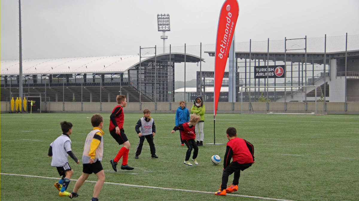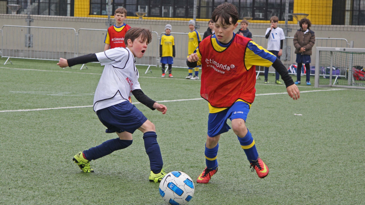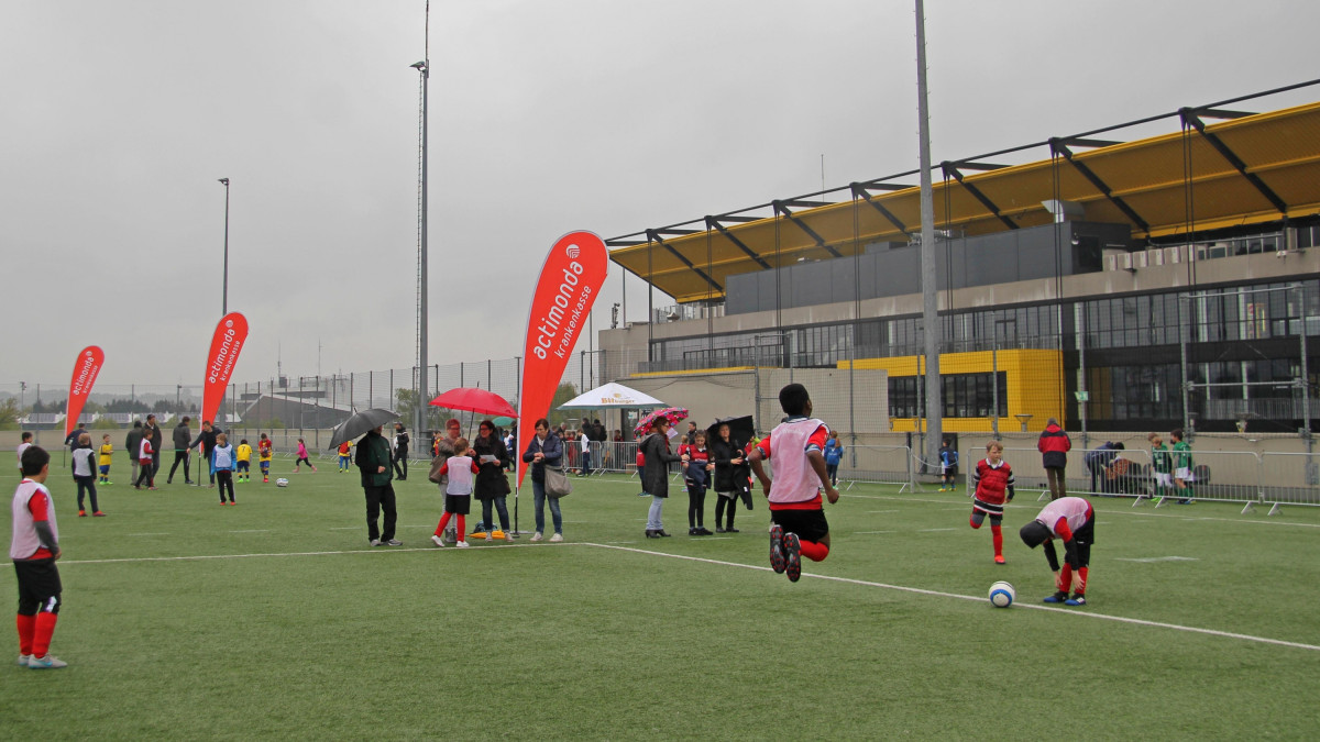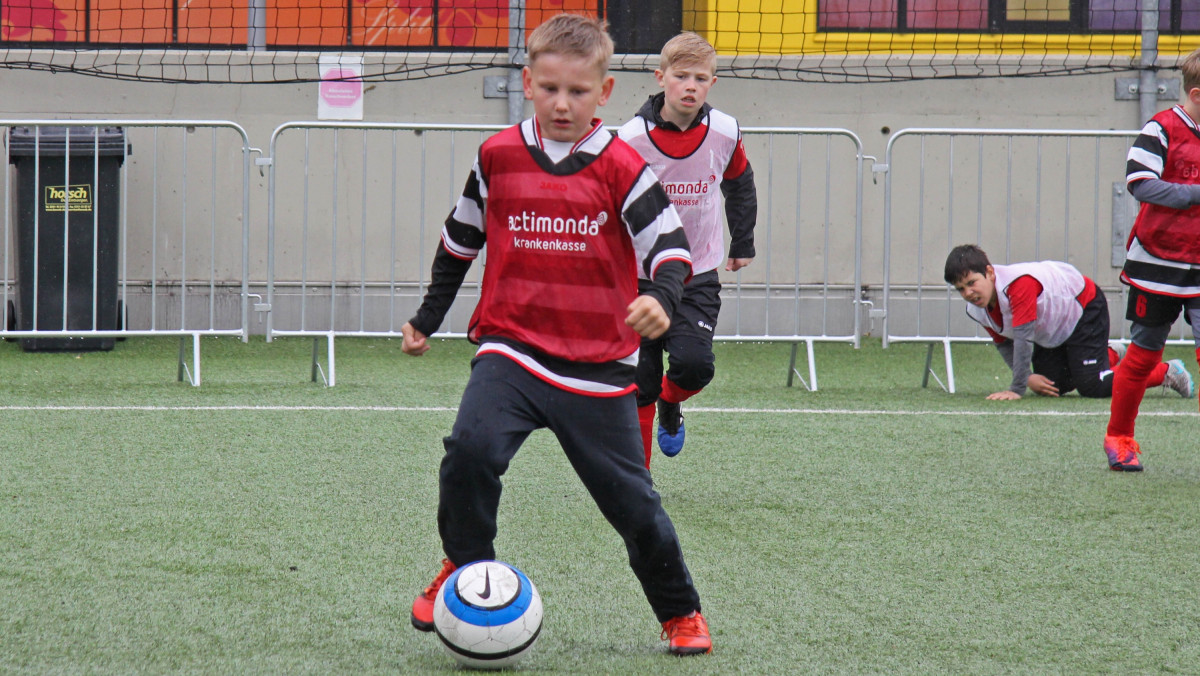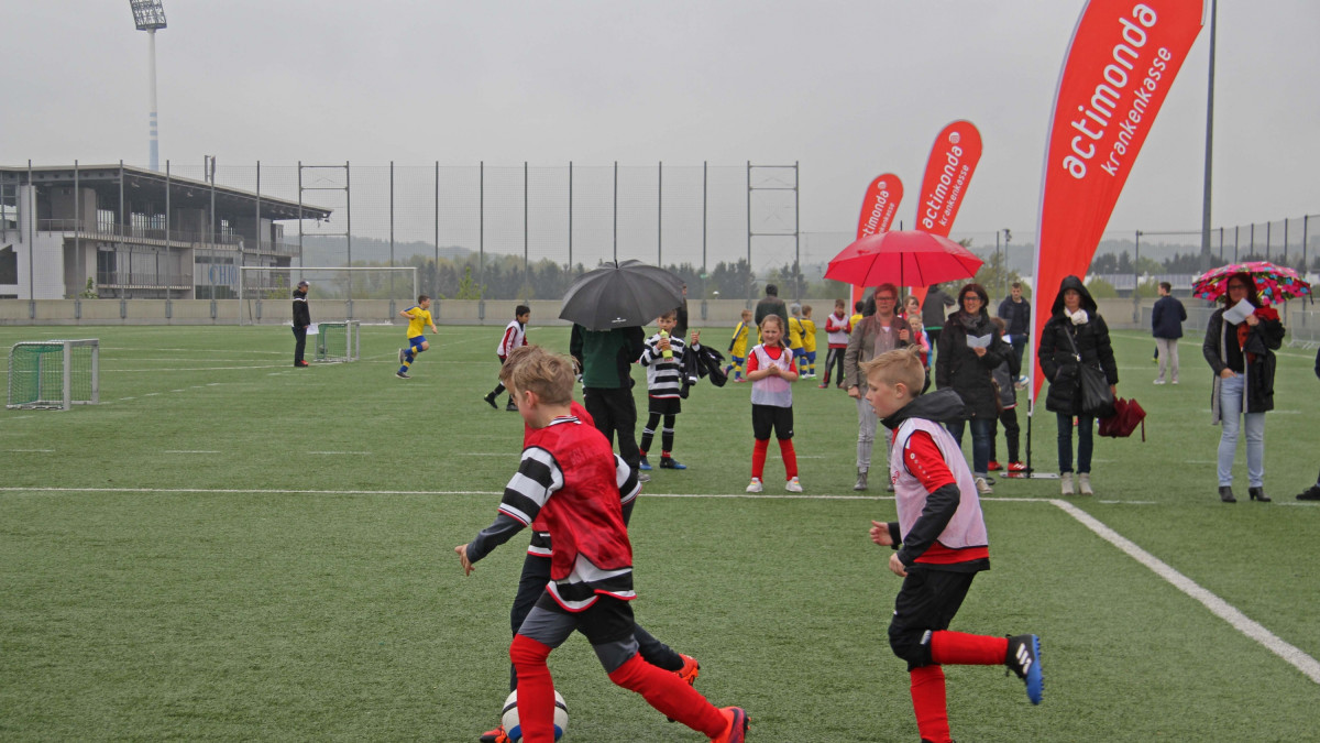 Der Wind brauste über das Parkhausdach am Tivoli und immer wieder gab es Regenschauer. Die Laune ließen sich die Aachener Grundschulkinder dennoch nicht verderben. Mit 14 Teams startete am Dienstag das actimonda Schulturnier.